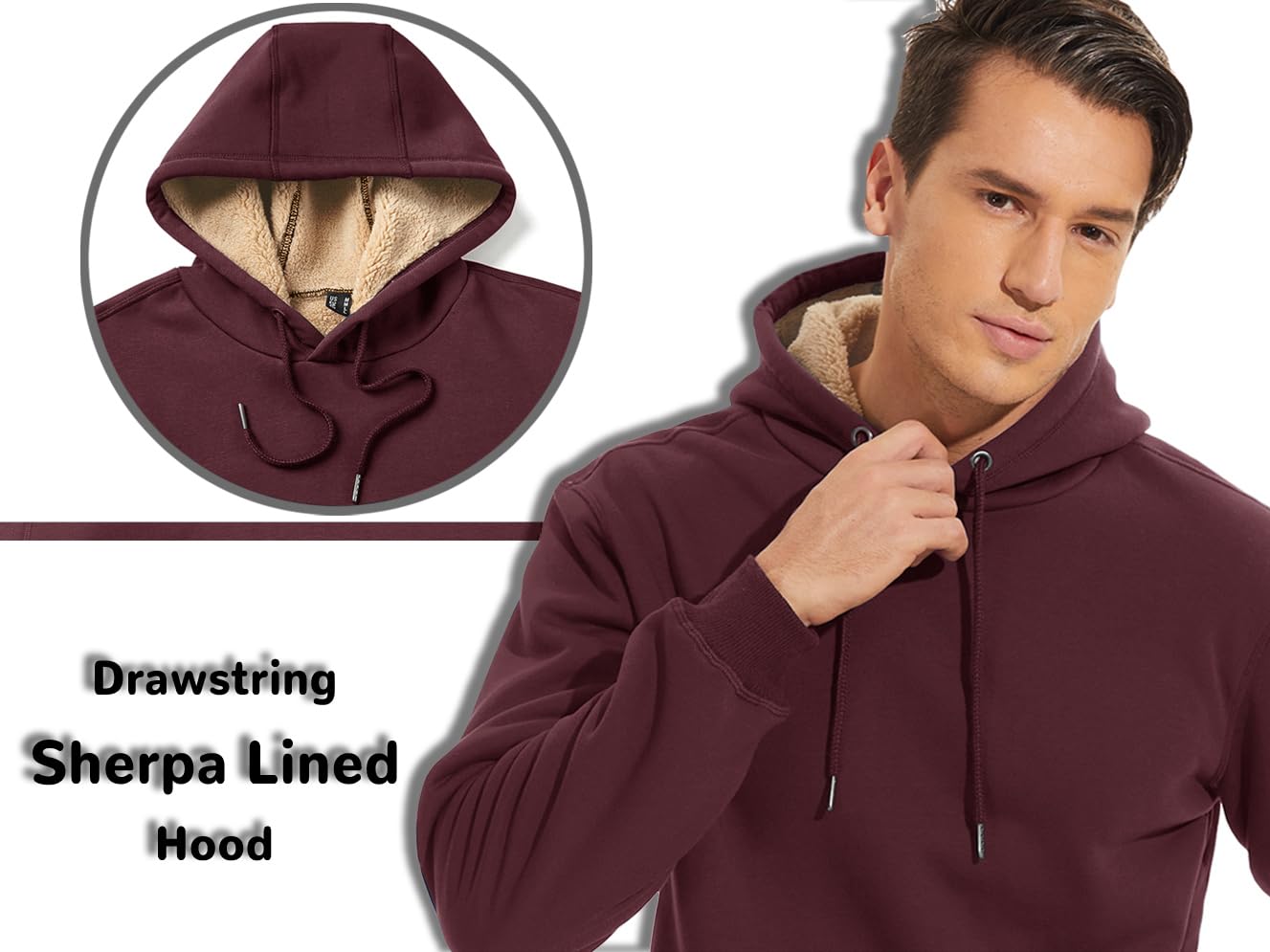 TACVASEN Mens Hoodies Pullover Warm Fleece T Shirt Hoody Sweatshirt Sherpa Fleece with pocket Wine Red XXL