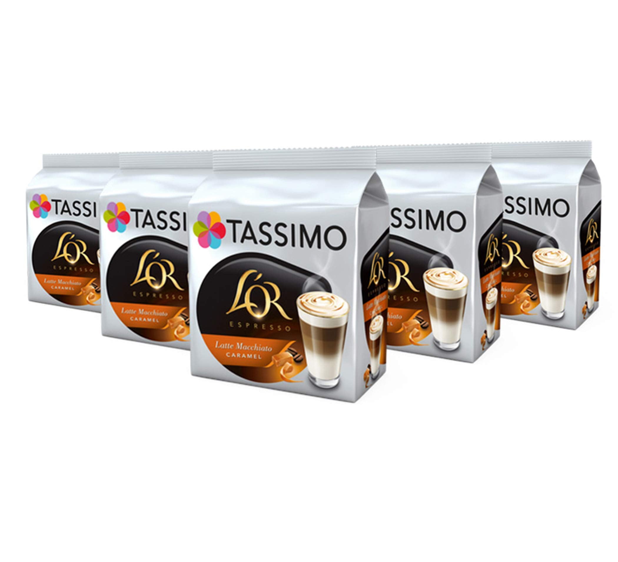 DescriptionProduct DescriptionTASSIMO creates perfect coffee shop style lattes every time thanks to its clever barcode technology which tells the machine how much water to use, the optimum brewing time and precise water temperature. Enjoy your favourite Carte Noire Latte Macchiato Caramel at the touch of a button. Flow heater technology means virtually no heat up time and minimal waiting between drinks. Manual adjustment of drink strength and no transfer of taste between drinks. Discs, pods.IngredientsRoast and Ground Coffee, Flavoured Latte Creamer from Milk: Lactose- and Mineral- Reduced Ultrafiltered Milk Concentrate (60%), Sugar (20%), Water, Salt, Acidity Regulator (E339), Flavouring Allergy Information: Contains MilkDirectionsExclusively for the Tassimo system. Not compatible with Braun machines with the Kenco logo.Safety Warning[PO] Store in a cool, dry place away from heat sources.Box ContainsEach order comes with 5 x TASSIMO Carte Noire Latte Macchiato Caramel 16 T DISCs (Total 80 T DISCs)