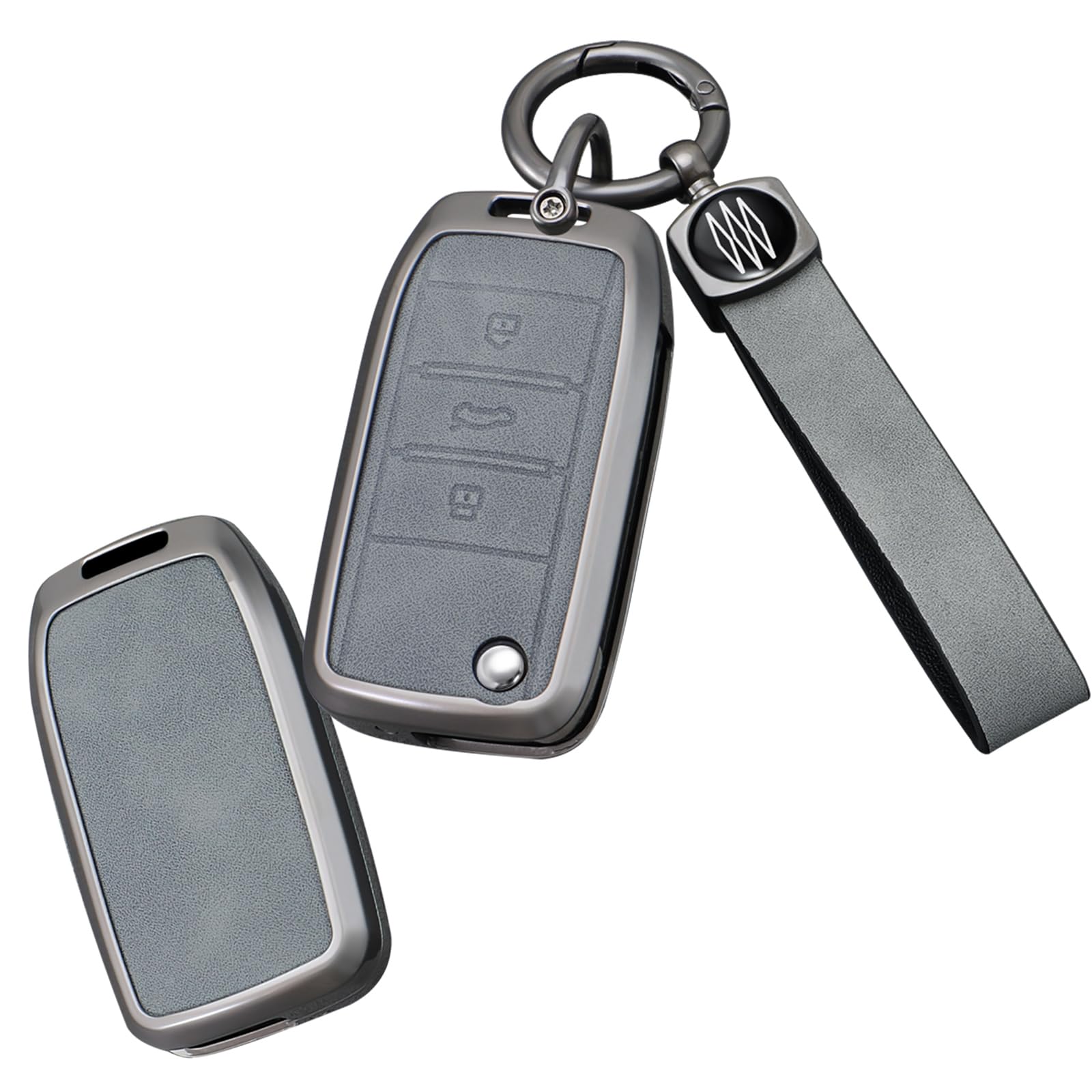 TECART Flip Key Car Key Case Car Key Case Fits MG Morris Garages MG3 MG5 MG6 MG7 EZS HS EHS X-Power MGR RX5 ZS ZR ZT GT GS Protective Leather Key Protector 3 Buttons B Grey