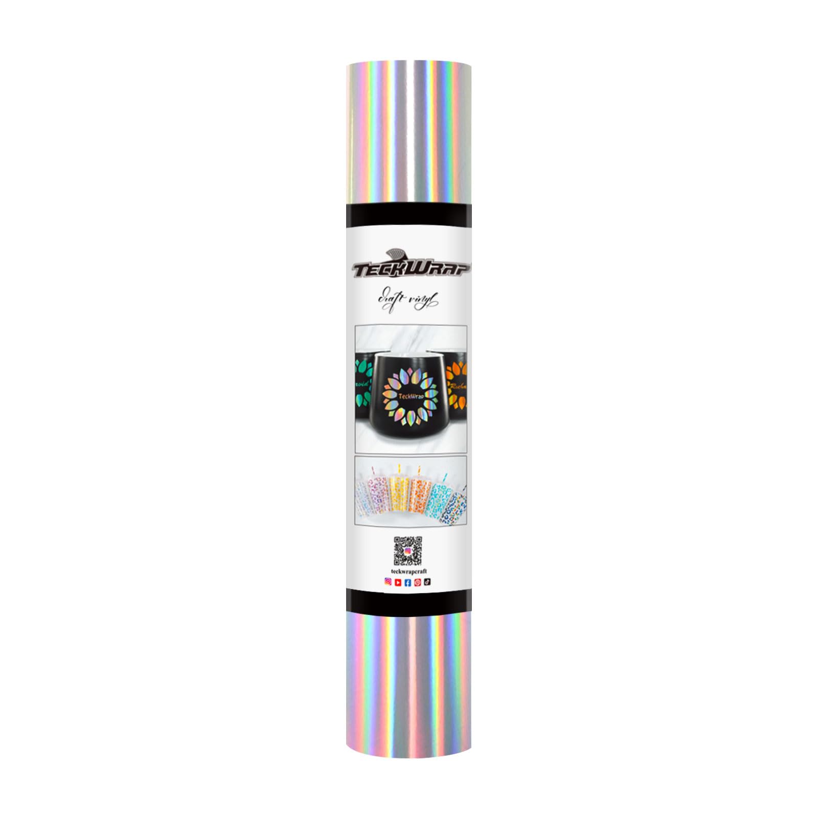TECKWRAP Holographic Chrome Bubble Free Adhesive Vinyl Permanent Holographic Vinyl with Air Channels 1ftx5ft, for DIY Craft Decal, Silver