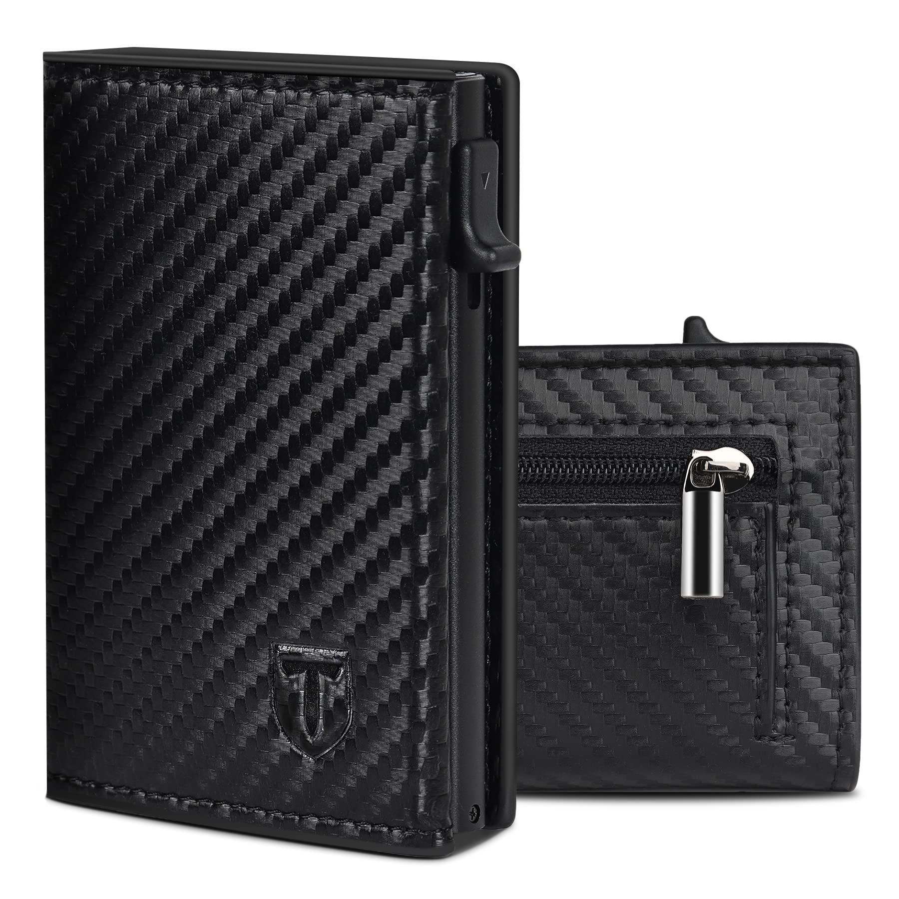 TEEHON is a compact and practical card case specially designed for business people, allowing easy, one-handed access to your cards. In addition to the card case, there is also a compartment for your banknotes and a zipped coin pocket. The one-handed operation allows you to hold up to five cards depending on your needs, and there is also a card slot inside for 1-2 cards