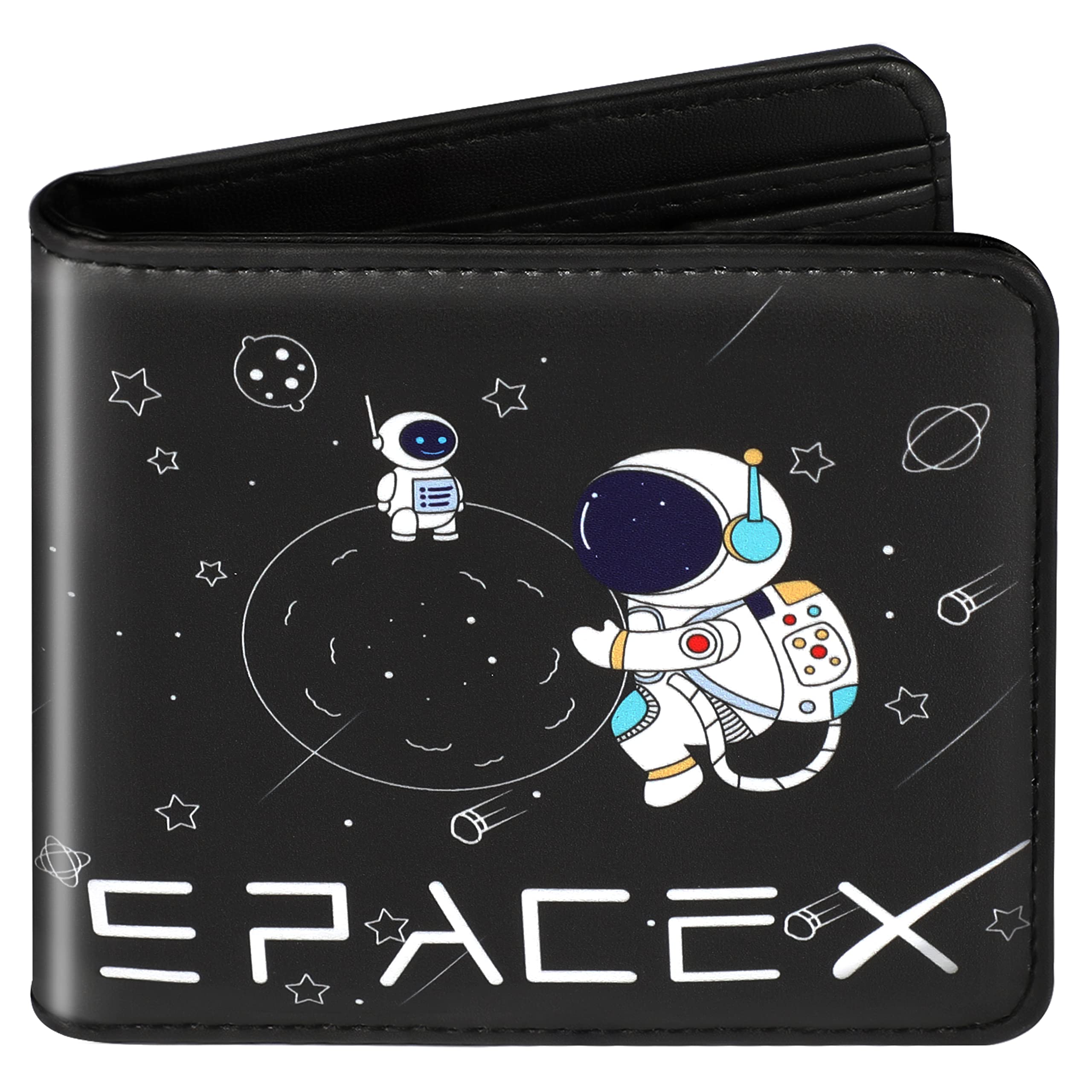 Teen Boys Cool Wallet-Men Mens Men'S Space Leather Credit Id Card Cash Holder Man Black Rfid Blocking Zipper Wallets With Coin Pocket Id Window Aesthetic Teen Boy Male Youth Guys