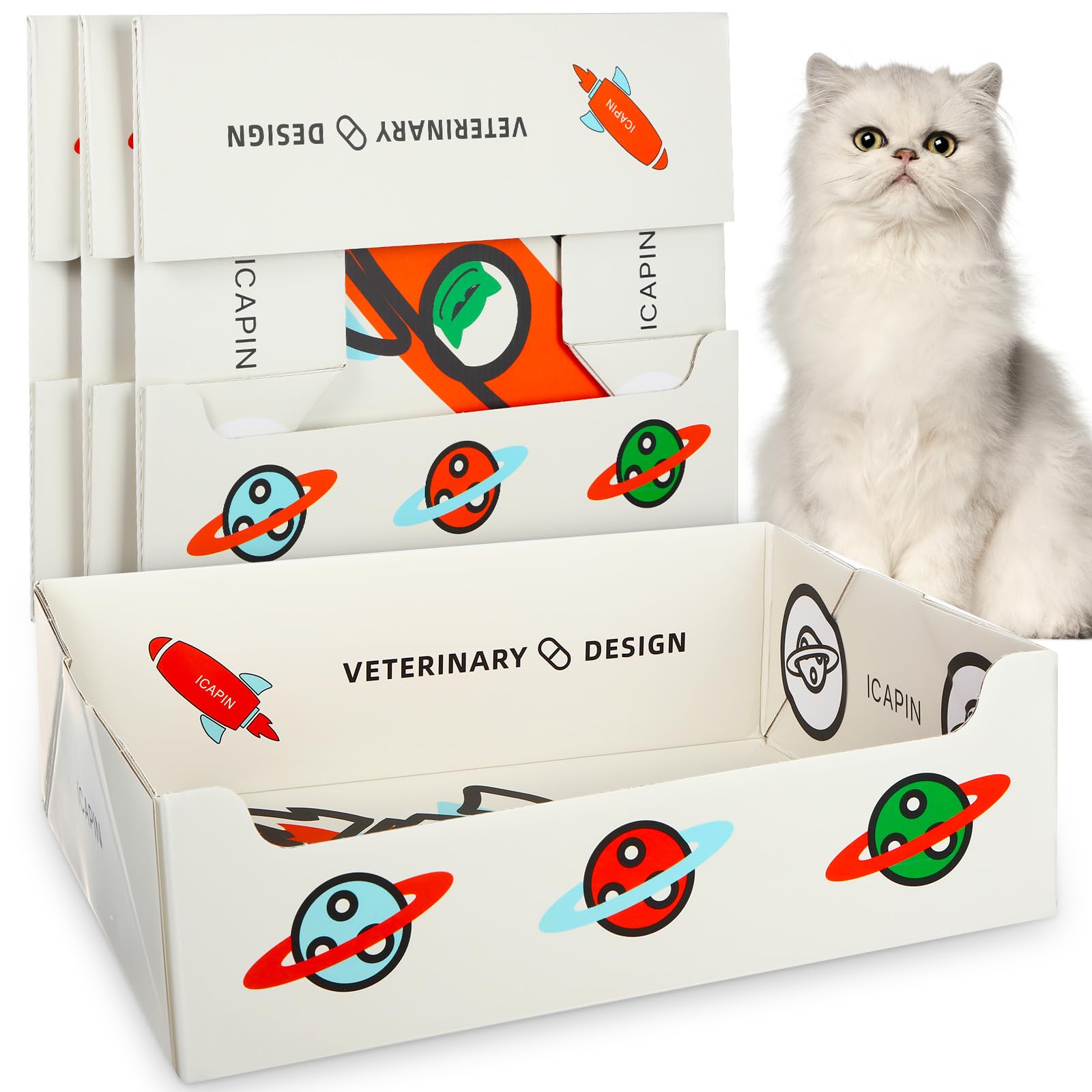 Teling 4 Pcs Disposable Litter Boxes for Cats Double Layer Waterproof Travel Litter Box, Foldable Portable 2 in 1 Cat Litter Box Trays for Travel Small Pets Liner Boxes, 14.96 x 11.8 x 4.7 Inch
