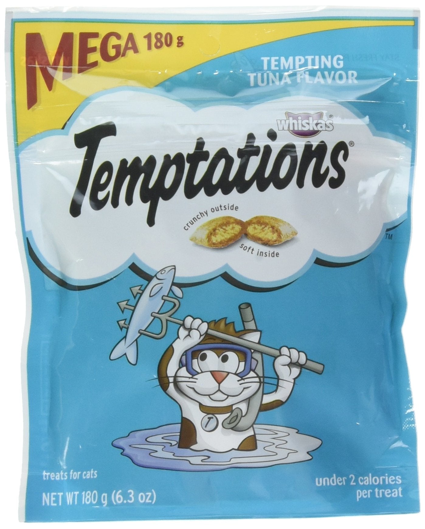 There are plenty of fish in the sea, but none as delicious as These! whiskas temptations mixups surfers' delight cat treats are made with the delicious tastes of Tuna, shrimp, and salmon flavors in every bag! and not only are they scrumptious but they're only two calories each! so bring out the Ocean lover in your cat with whiskas temptations mixups surfers' delight cat treats!