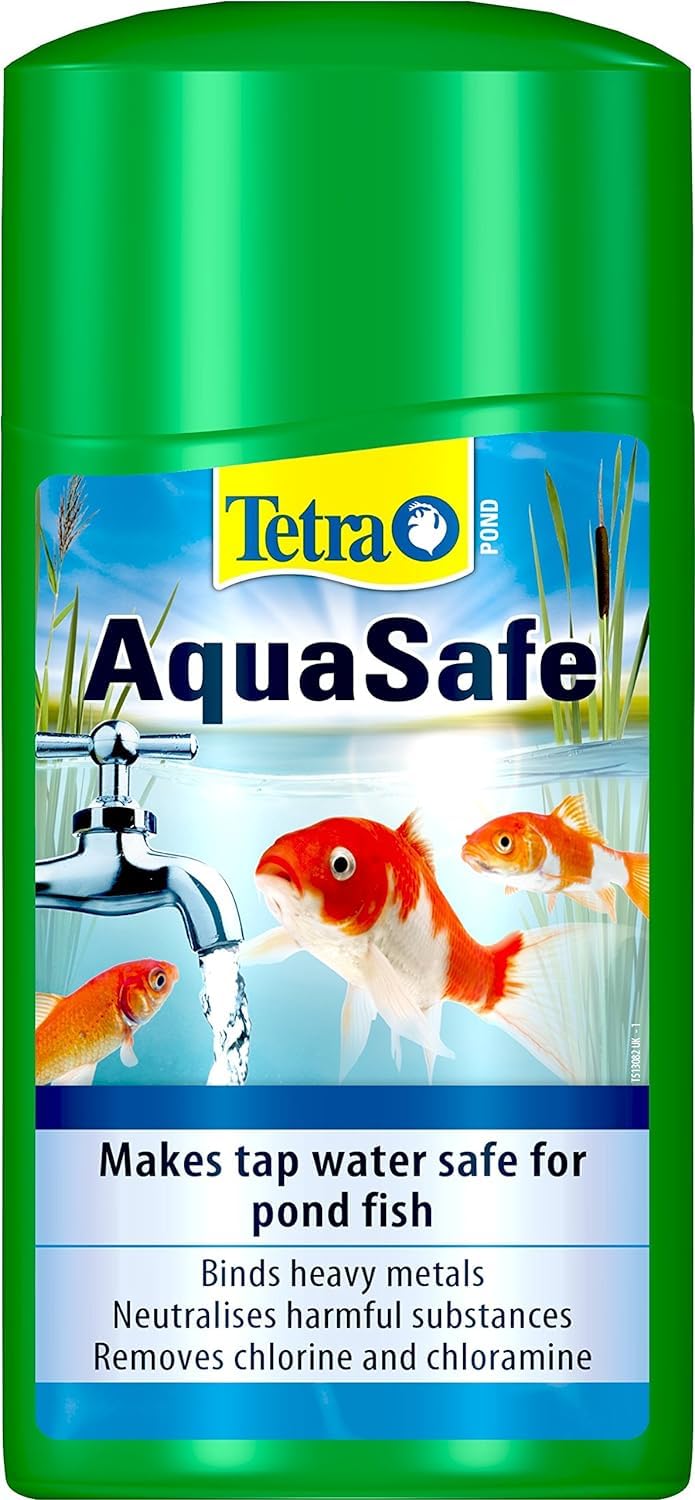 Product descriptionTetra Pond Aqua Safe makes tap water suitable for fish by removing harmful compounds and adding beneficial substances.Tetra Pond Aquasafe should be added to tap water to the pond, following maintenance or evaporation. Tap water is designed for human use, and therefore contains high levels of chlorine to kill germs. In addition, it may contain varying levels of toxic heavy metals. Both chlorine and heavy metals are toxic to fish, and will cause them long-term damage and stress. Leaving water to stand will not remove all of these factors, and so is not an alternative to using a water conditioner.Tetra Pond AquaSafe neutralises harmful elements in tap water, and adds beneficial substances to create healthy, fish-friendly water.Box ContainsEach order comes with 1 x Tetra Pond Aquasafe Water Conditioner, 1 Litre