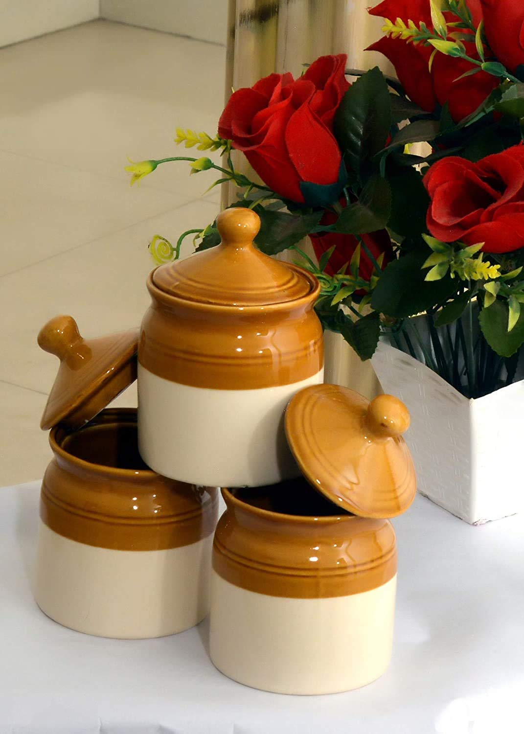 India to help you store your pickles, chutneys, spices and other condiments. For generations now, Indians believe that the natural material of the jar does not affect or alter the taste, flavour and colour of the contents but in fact enhances its nutritional value. The ceramic material is a good preservative and keeps germs, bacteria and fungus away making it ideal for long stored food items. Go ahead and add a little vintage oomph to your living space. This versatile ceramic jar could be used to serve dips and cocktails as well when you’re entertaining guests. Now talk about being versatile, healthy and hip, while being sensitive to the environment by avoiding the use of plastic containers. It is dishwasher and microwave safe. Sponsored products related to this item