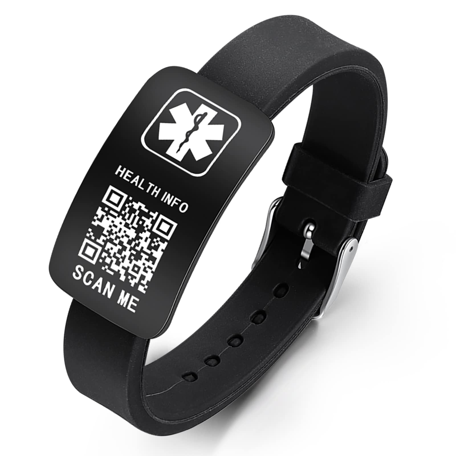 Theluckytag Medical Bracelets for Men Women with QR Code Medical Alert ID Bracelets- Silicone Waterproof Wristband Fits Wrists Up to 9'' - More Space Custom Emergency Medical ID Alert Info