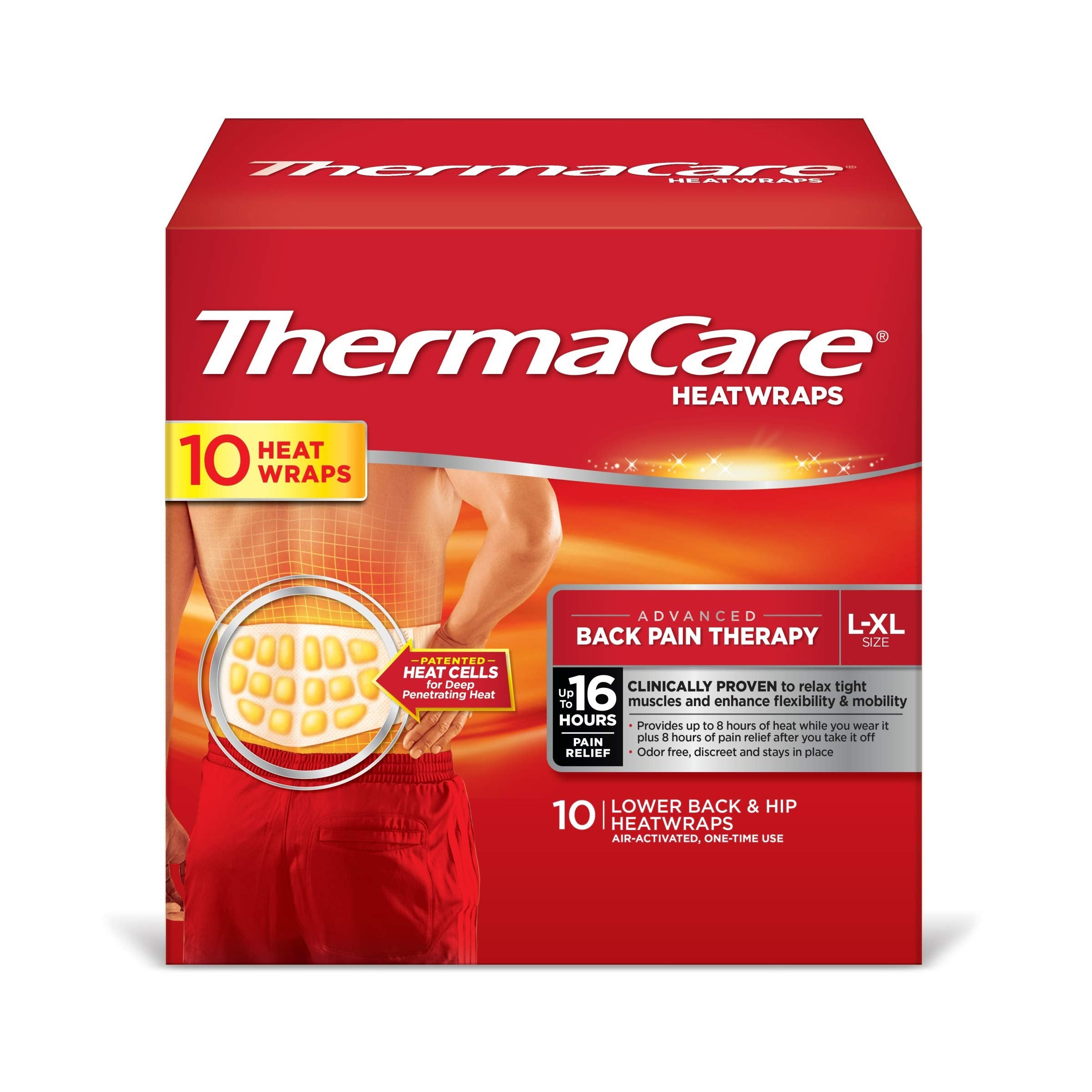 Back pain is often caused by tight muscles. ThermaCare Back Pain Therapy HeatWraps deliver 8 hours of continuous, therapeutic warmth and keep relieving pain for an additional 8 hours after you take it off. In fact, the American College of Physicians (ACP) recommends real heat as a first defense against acute lower back pain. Available in two sizes, these single-use wraps are designed to provide pain relief at home or on the go.