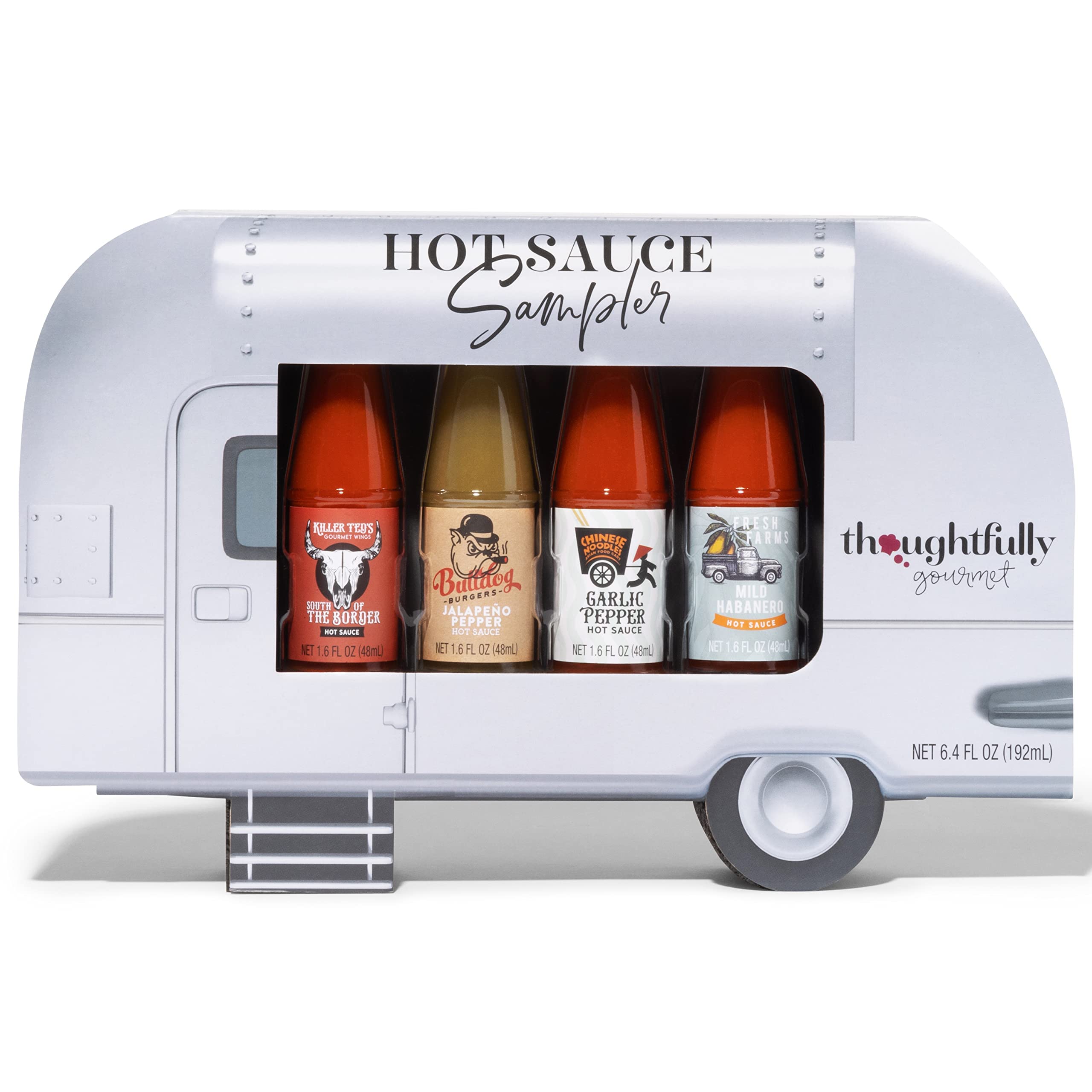 Thoughtfully Gourmet, Air Stream Foodie Finds Hot Sauce Sampler Gift Set, Flavours Include Mild Habanero, Garlic Pepper, Jalapeno Pepper and South of the Border, Set of 4 Flavourful Chilli Hot Sauces