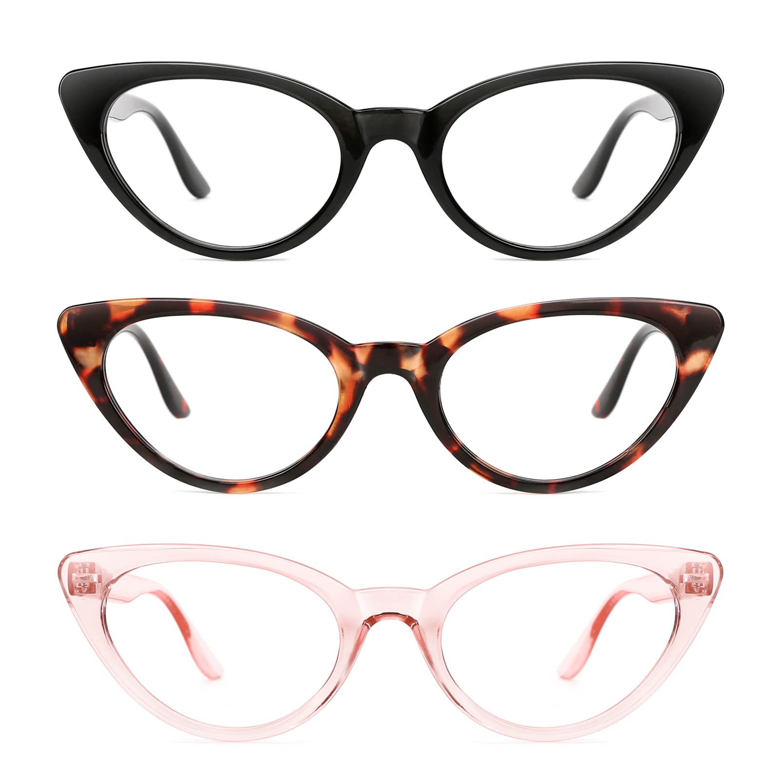 TIJN 3Pack Retro Cat Eye Reading Glasses Readers for Women Blue Light Blocking Cateye Eyeglasses Reader(1.5)
