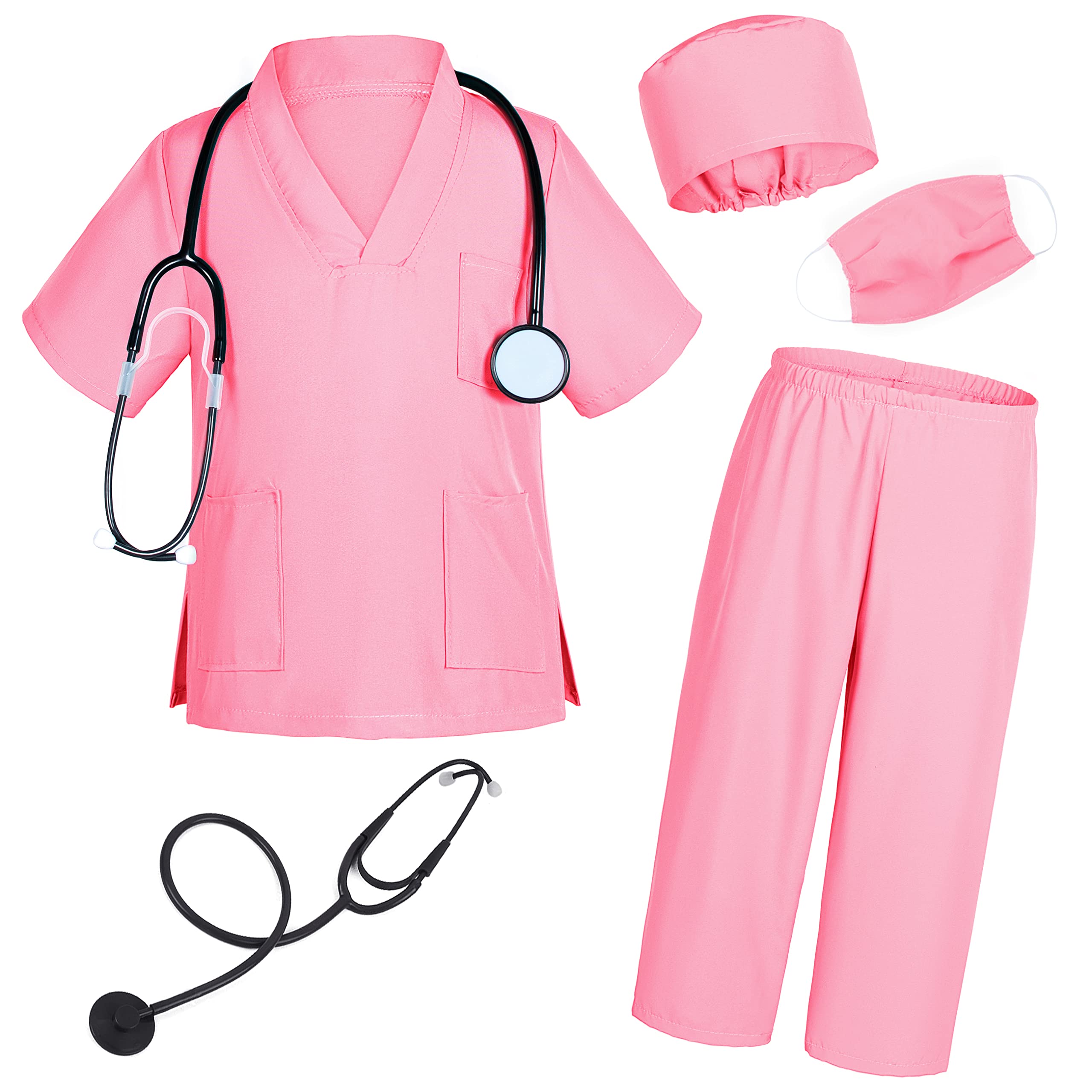 TOGROP Doctor costume for kids scrubs pants with accessories set toddler children cosplay 7-8 Years pink