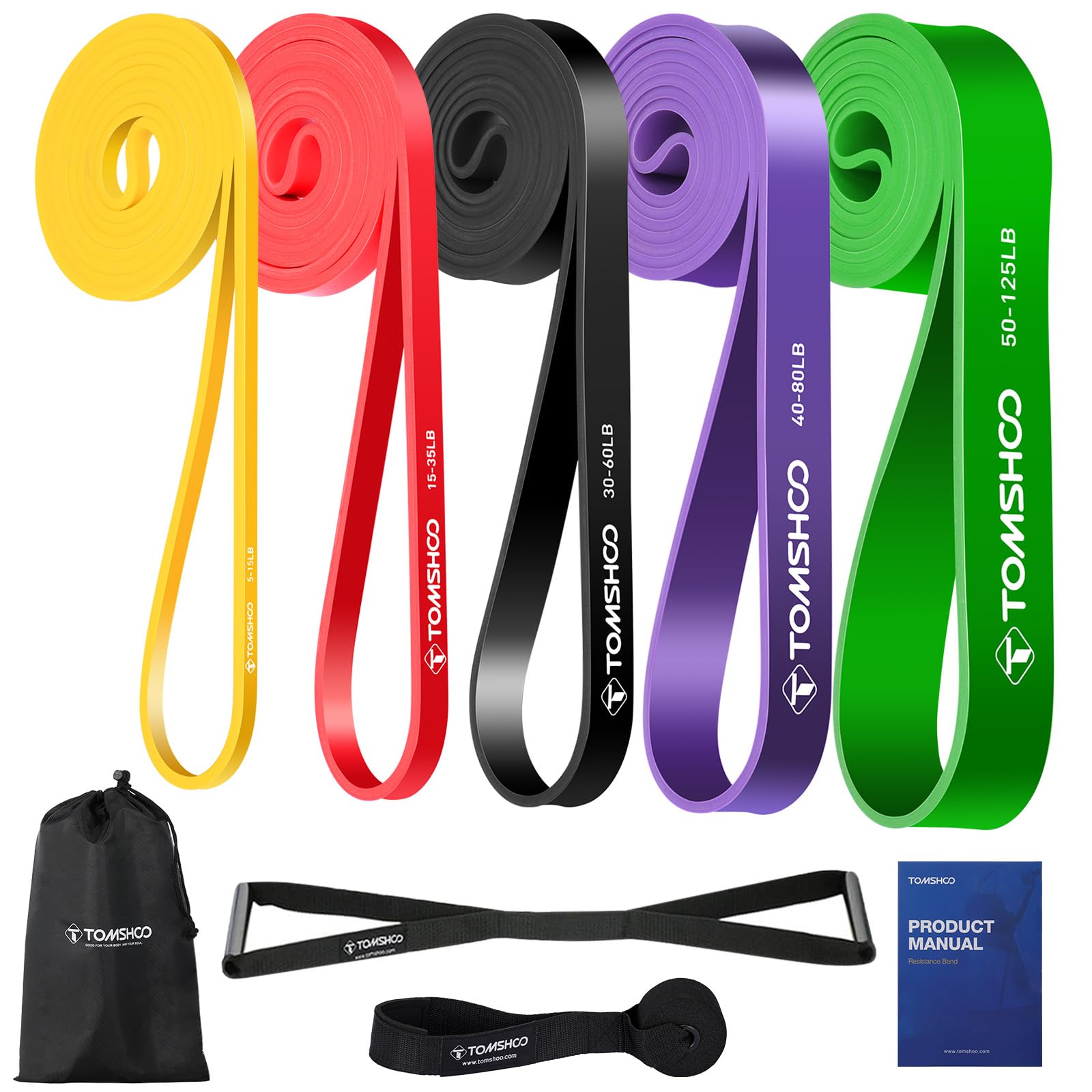TOM SHOO 5 Packs Pull Up Assist Bands Set Resistance Loop Bands Powerlifting Exercise Stretch Bands with Door Anchor and Handles