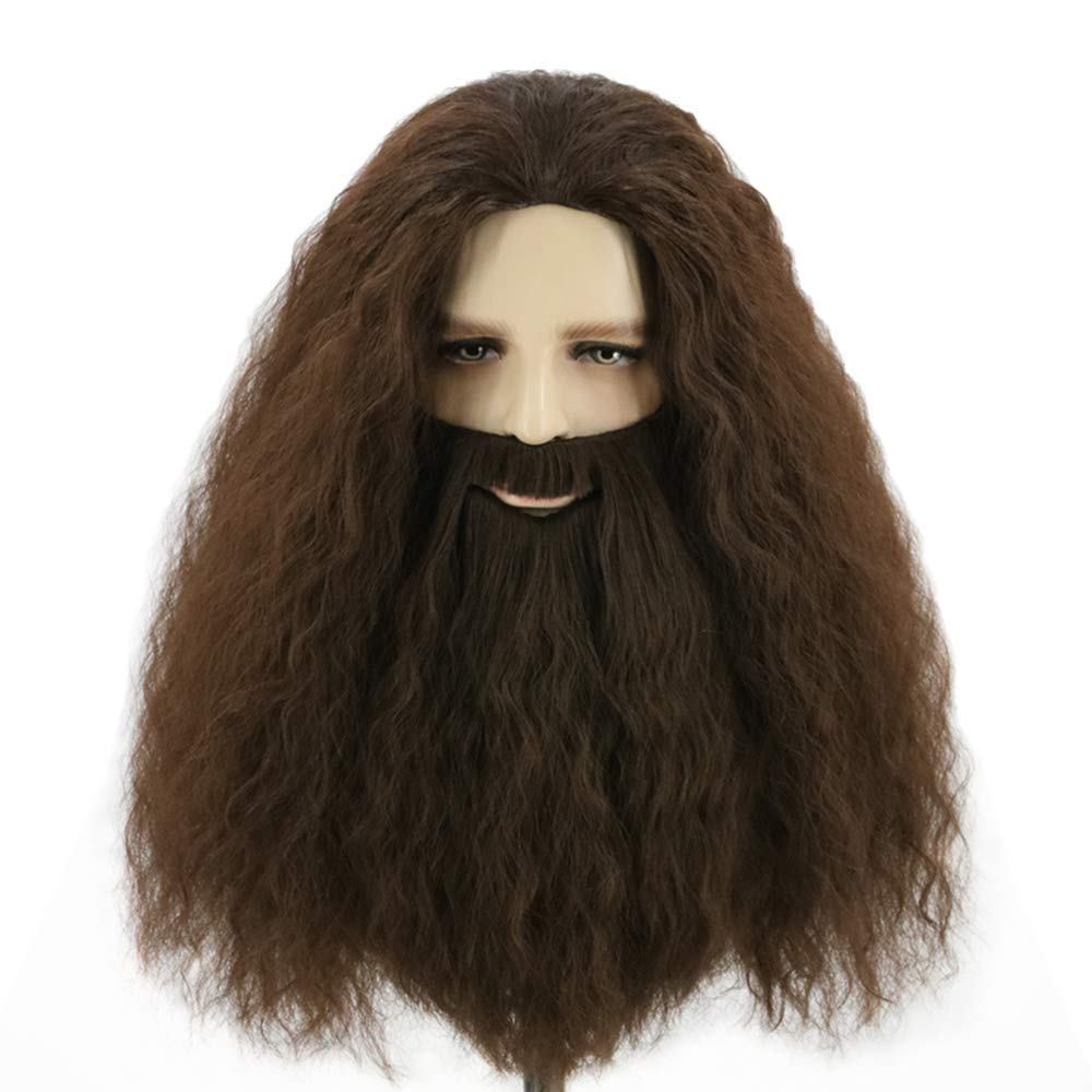 Topcosplay Wig and Beard Adults Long Brown Curly Wig Wizard Wig for Halloween Carnival Fancy Dress Party (Brown)
