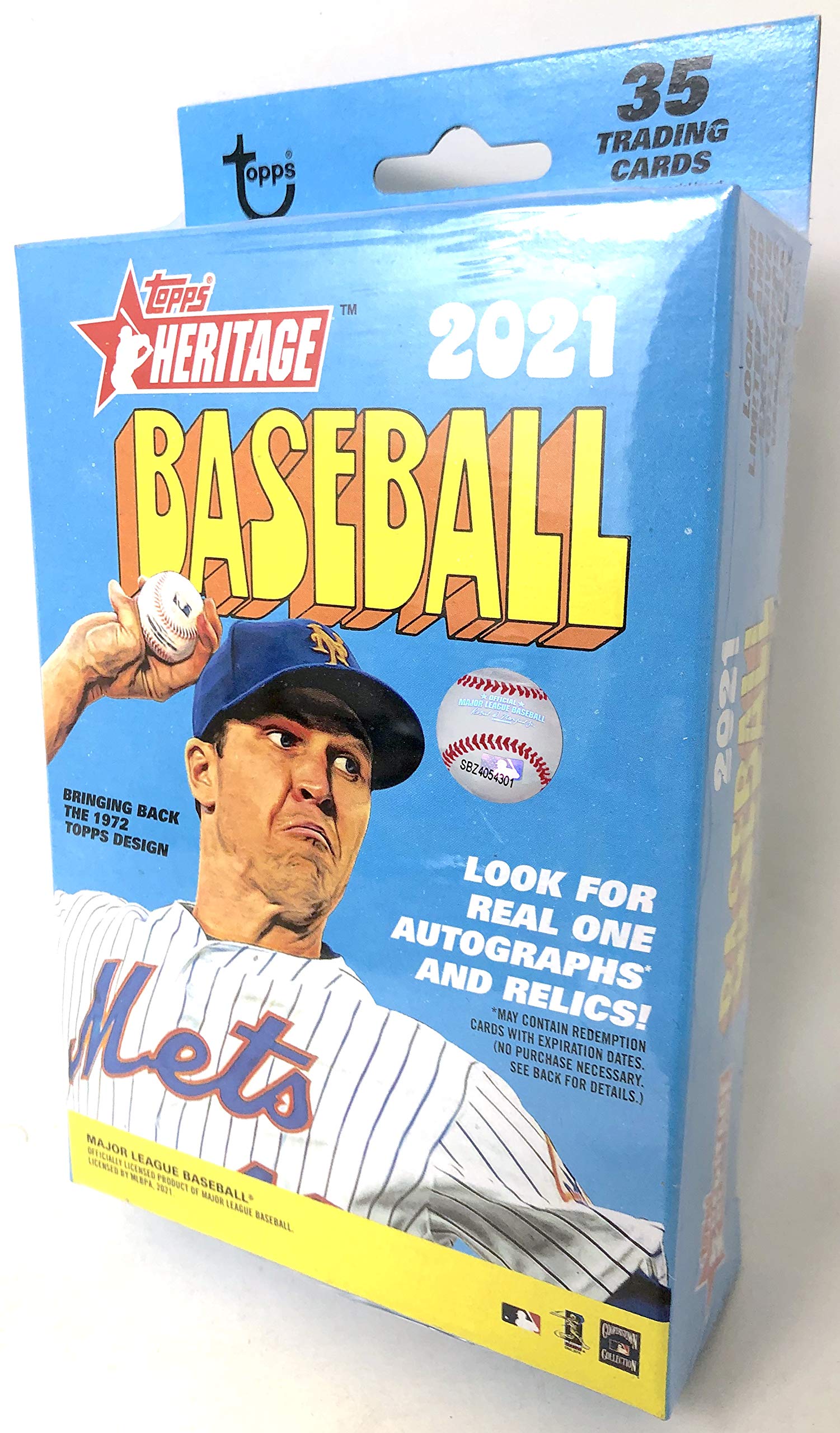 At the crossroads of modern Baseball and nostalgia, collectors will find 2021 Topps Heritage Baseball.Cards will feature current stars and legendary players on cards featuring or inspired by the classic 1972 Topps design.Packs may contain Real One Autographs, Clubhouse Collection Relics, Chrome Base Card Variations, original 1972 Topps Baseball cards, and more!Each Box contains thirty-five (35) 2021 Topps Heritage Baseball Cards.Factory Sealed