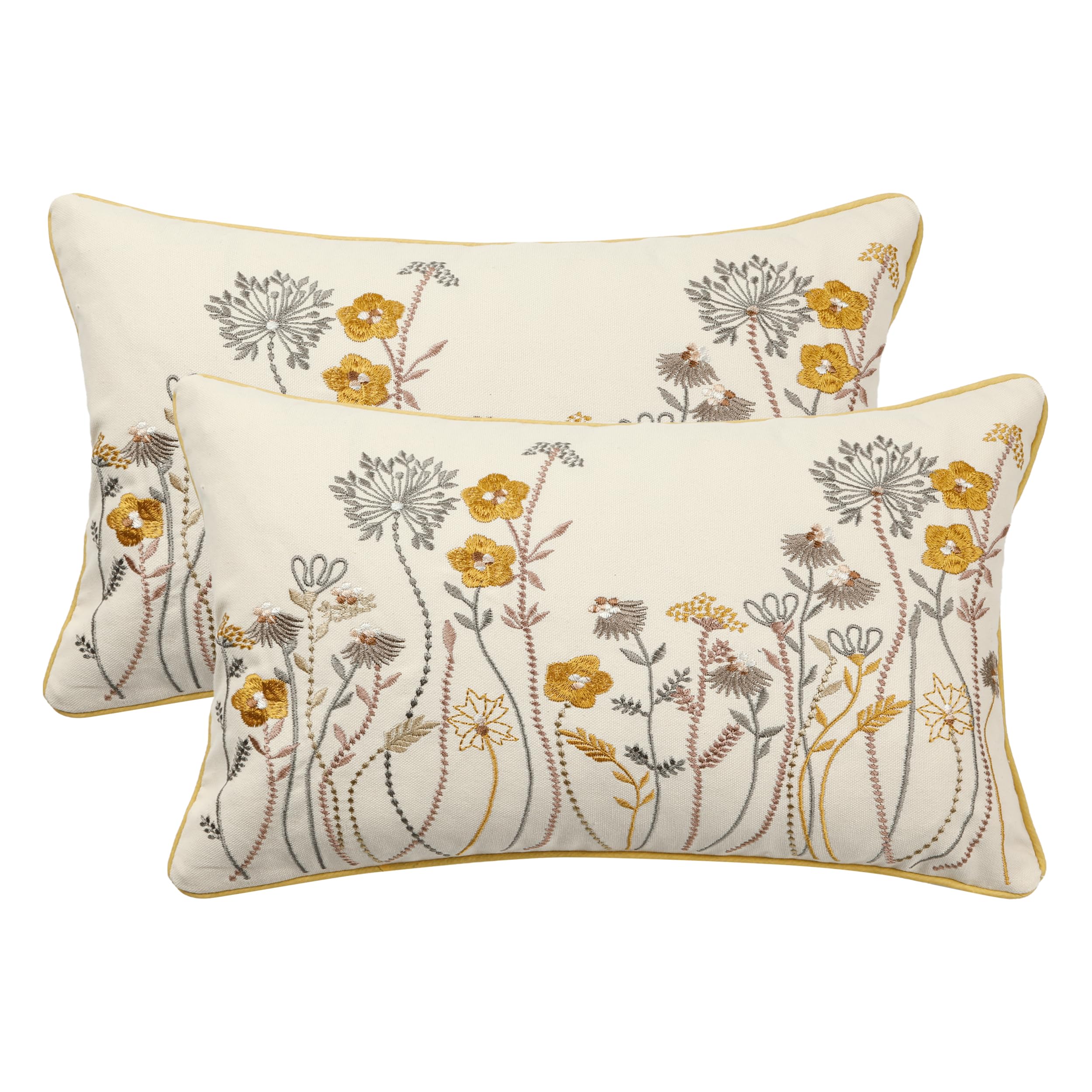 Embroidered Throw Pillow Covers Set of 2, Flowers Pillow Cushion Cases, Modern Decorative Square Pillowcases for Sofa Couch Bedroom Living Room Car