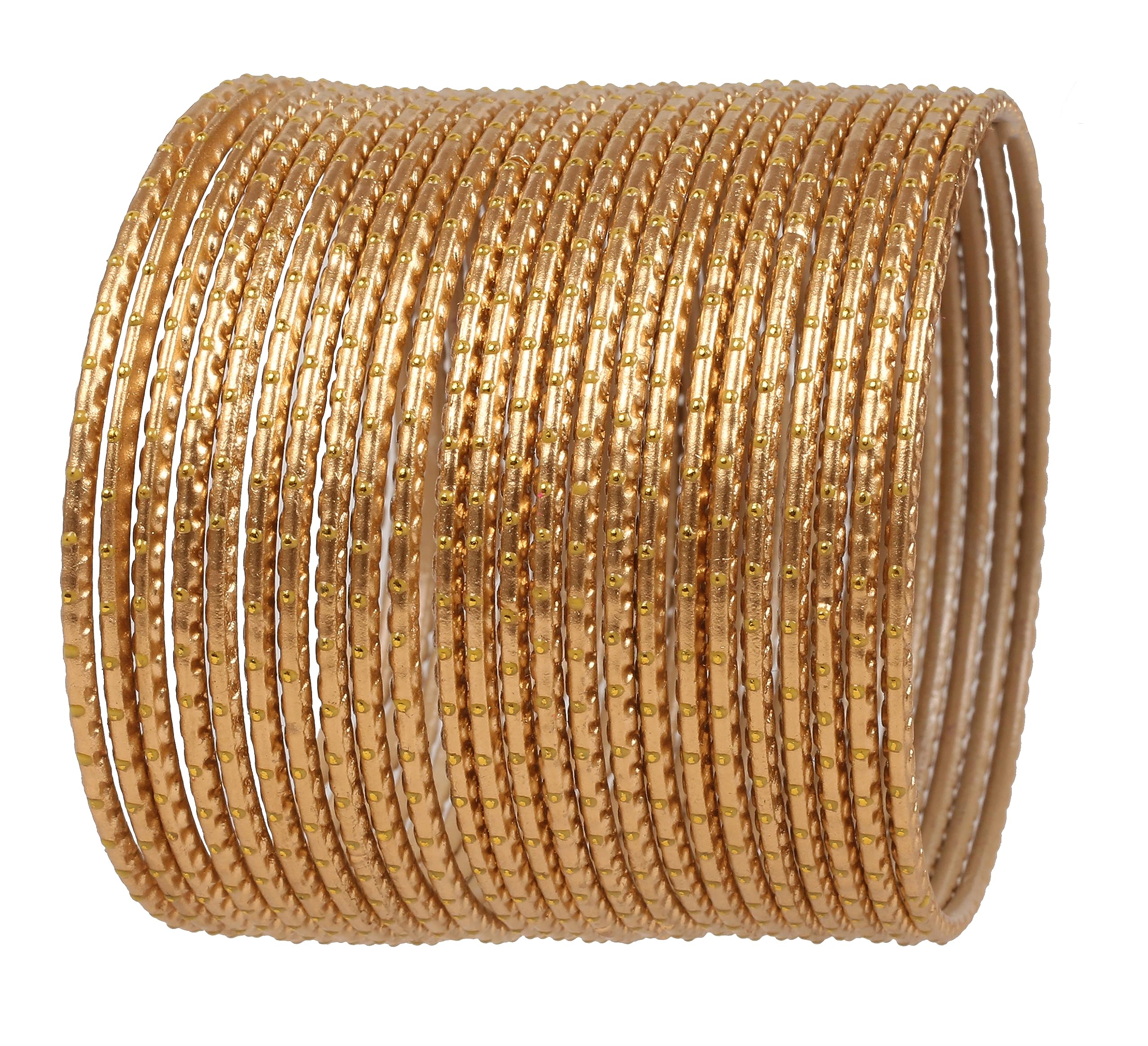 Alloy Metal Indian Handcrafted Finely Hand Trimmed Edges Textured Golden Color Golden Dots Bracelets Bangle. Set Of 24.