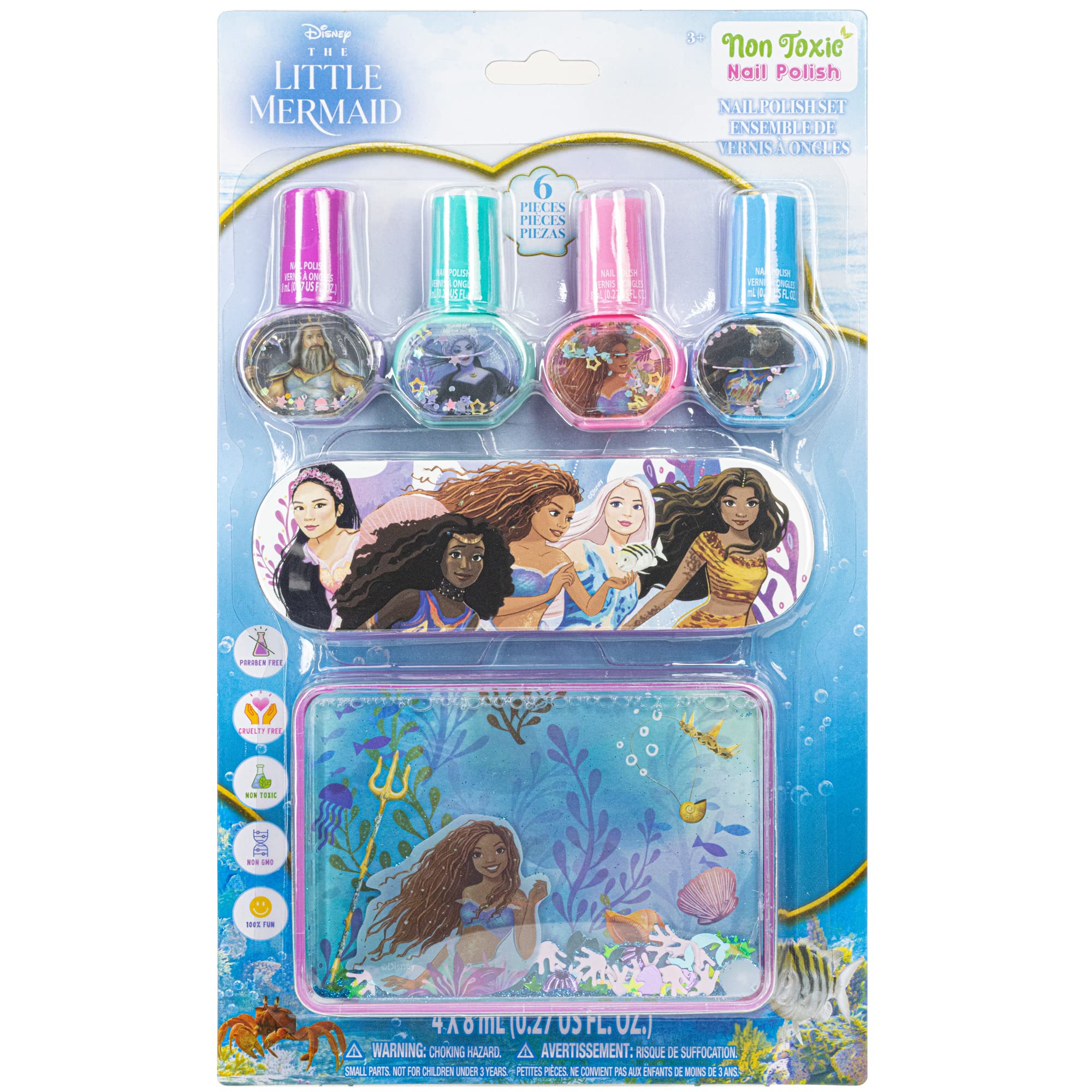 Townley Girl - Disney The Little Mermaid Ariel Non-Toxic Peel-Off Water-Based Safe Nail Polish Set with Nail File & Water Box for Kids, Ages 3 & Up, Dark Blue,Pink,Purple,Teal, 0.23Oz, 0.4lbs, 1Pack