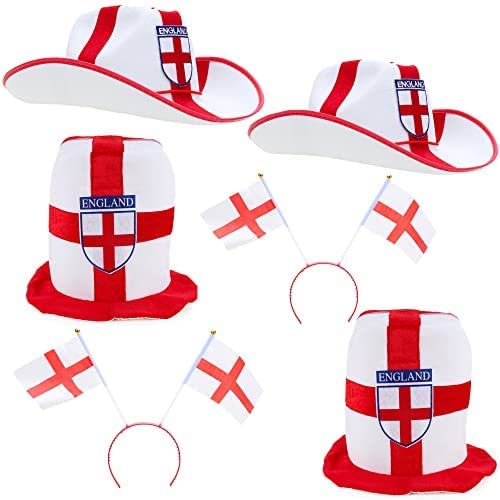 Get the party started with this bundle of novelty hats! Whether you are celebrating the football, the Queens Platinum Jubilee or any other event, these hats will be a perfect addition to your celebrations. This fantastic bundle consist of 6 hats. 2 x England design cowboy hats, 2 x England head boppers and 2 x England design top hats. This bundle is sure to add to the excitement and you can capture the moments by taking plenty of pictures with your England dress up!