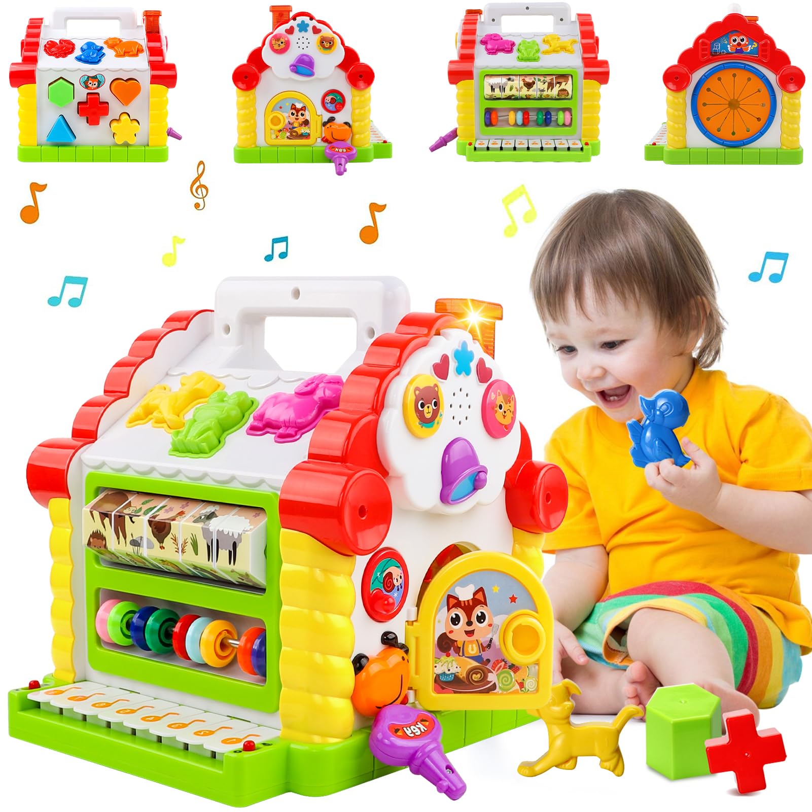 ??6-in-1 Activities Toddlers Toys?The fun hexagonal house is designed according to the nature of the baby.11 3D Blocks,8 Musical Scales, 22 Sound Effects,8 Fun Songs,6 Animal Sounds,Unlocking Design.It is a baby girl toys 12-18 months montessori toy that baby will not be bored to play for hours, free mom's hands. | ???Fun Learning and Education?Birthday gift for 1 year old girl.Each side is a new toy for kids to enjoy playing that can help babies learn numbers,music theory and exercise their memory training,listening,hand-eye coordination development. | ???Friendly & Thoughtful Designs?This musical funny house baby toys for 1 year old with Adjustable Volume.There is a handle on the top,which is convenient for the baby to put and grab wherever he/she wants to go | ???Safe and Durable?Made of non-toxic ABS material, rounded edges and smooth surface, durable nd good resistance to mill. Passed the US standard CPSIA and ASTM certification,which is safe toddler toys age 1-2 girl to play. | ???Best Baby Gift ?Our baby music early learning activity cube is a great early education toys, toy. It is the perfect gift toys for 1 2 3 Year Old Girls Boys Birthday, Christmas,Easter, Thanksgiving, Preschool Props,Teaching Aids, etc.Great baby toys for 1 year old.