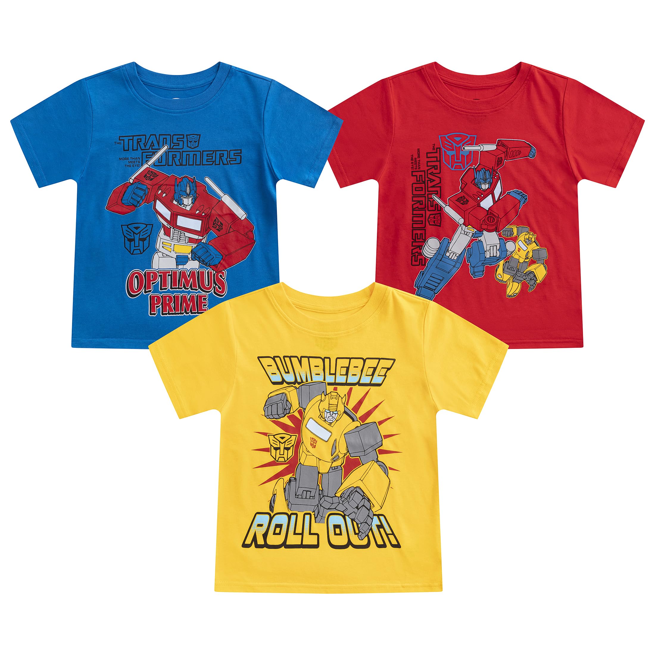 Cool and Comfy Hasbro Transformers Boys Short Sleeve Shirts Pack for Little Boys. The Perfect Boys Clothing Packs. Contains One Cool Blue Transformers Optimus Prime Print T-Shirt, One Amazing Yellow Bumblebee Roll Out! Print T-Shirt, and One Stylish Red Transformers Optimus Prime and Bumblebee Print T-Shirt. Dress Your Little Boy in These Comfy and Stylish T-Shirts for Little Kids Featuring His Favorite Transformers Characters; Optimus Prime and Bumblebee! Perfect as Size 4 Boys Shirt, Size 5 Boys Shirt, Size 6 Boys Shirt and Size 7 Boys Shirt. The Perfect Outfit for the Spring and Summer Season. An Ideal Tees for Your Son or Grandson. He Will Look Absolutely Adorable! Ideal for Transformers Birthdays, Playdates and Many Other Occasions! Officially Licensed Hasbro Transformers Boy Clothes