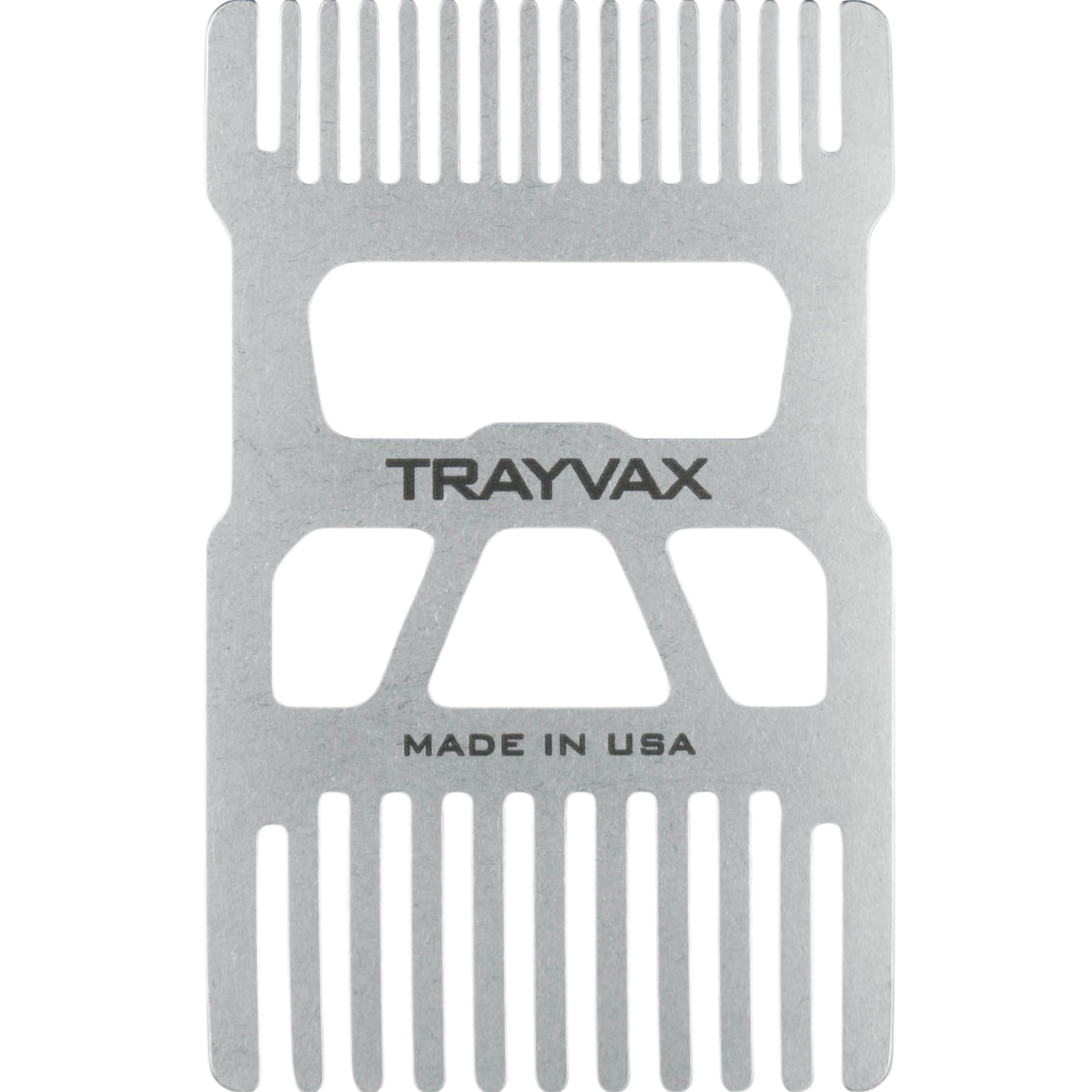 Keep well-groomed while on the go with the Trayvax Stainless Steel Wallet Comb! This ultra-thein and lightweight hair comb accessory tool is the size of a credit card, allowing you to easily keep it stored in your wallet, pocket, purse or hand bag so that you can always do quick grooming touch-ups during travel. This mens and womens portable comb is great for use with hair, beards, and mustaches, and features both wide and fine teeth for different hair types. This compact comb features a durable stainless steel construction with a high polish finish, making this an gift for those who value both style and practicality, and offers a high level of RFID protection. As an added bonus, this edc comb features an integrated bottle opener.