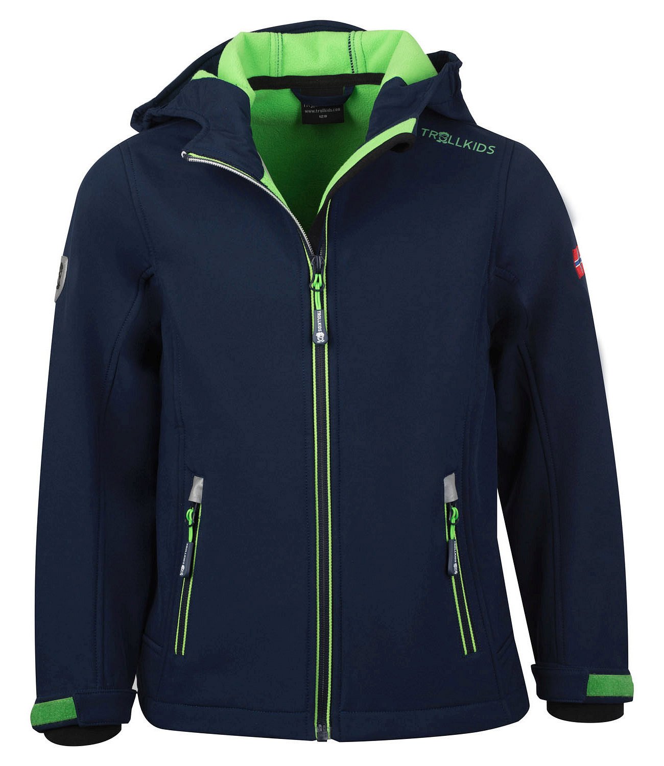 Trollkids Kids' Trollfjord Softshell Jacket, Navy/Light Green, Size 9-10 (140)