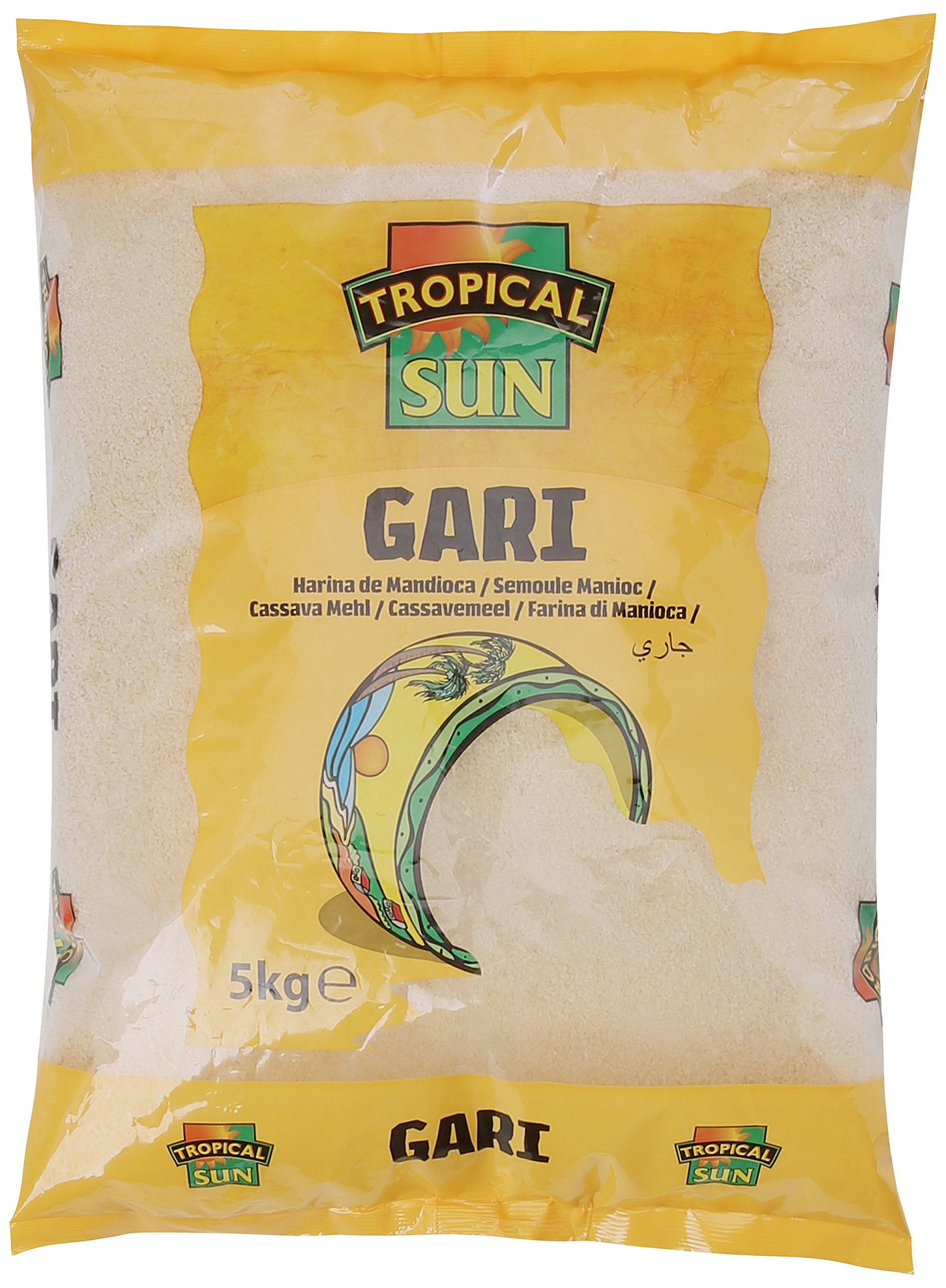 DescriptionProduct DescriptionTropical Sun Gari is a West African staple traditionally made from fermented, gelatinised fresh cassava tubers. Gari is usually a popular accompaniment to a vegetable or fish stew.At Tropical Sun we take pride in providing the very best products, finest quality at great affordable prices. For more products from the Tropical Sun range and different recipe ideas please visit www.tropicalsunfoods.comIngredientsDried casava grits (100%)Manufacturer Contact InformationSpecialist Foods, Unit 701, 43 Bedford Street, London, WC2E 9HA, United Kingdom.