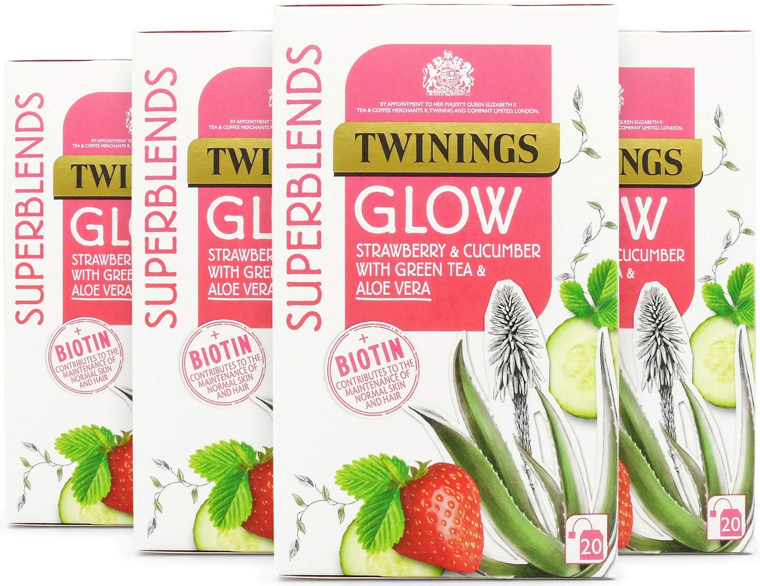 DescriptionProduct DescriptionWith over 300 years of trust and expertise in master blending, our team of expert herbalists & master blenders have worked together to develop a range of great tasting drinks for different wellbeing occasions. We've taken our tea blends to the next level to create our own Superblends. A delicious range of green teas and infusions expertly blended with botanicals, natural fruits, vitamins and minerals. To help you feel at your very best. When your skin & hair glows your radiate in confidence, this is the inspiration for this gorgeously sweet superblends tea, with radiance in every drop. This blend is a delicious mix of refreshing Green tea, Aloe Vera and Cucumber. A touch of gorgeously sweet, strawberries ensures this is the tastiest part of your beauty regime - vegan friendly & sugar free. Infused with Aloe Vera, an effective skincare & hair care ingredient, there's no better way to start your glow up. This herbal tea has added Biotin which contributes to the normal maintenance of normal skin & hair. Close your eyes and drink in the moment. Our tea bags are plant-based & biodegradable. Whoever you are, whatever you want from wellness, there's a Superblend for you. This Glow tea makes a great gift for anyone who needs a little self care.IngredientsGreen Tea (39%), Apple Pieces, Nettle, Natural Strawberry Flavouring with Other Natural Flavourings (8%), Peppermint, Natural Cucumber Flavouring (5%), Natural Flavouring, Aloe Vera Juice Granules (1%), Biotin (1%).DirectionsSimply use freshly boiled water and infuse the bag for at least 3 minutes. Give the teabag a few little stirs and a gentle squeeze to release the flavour before removing it from the cup.Safety WarningNoManufacturer Contact InformationSouth Way, Andover, Hampshire, SP10 5AO