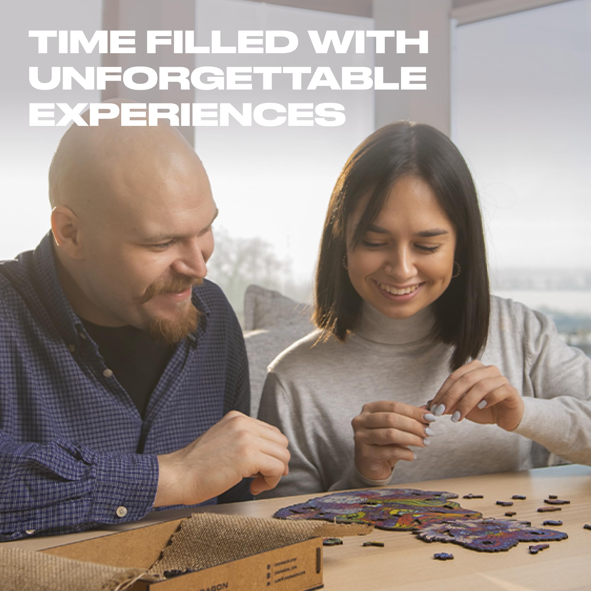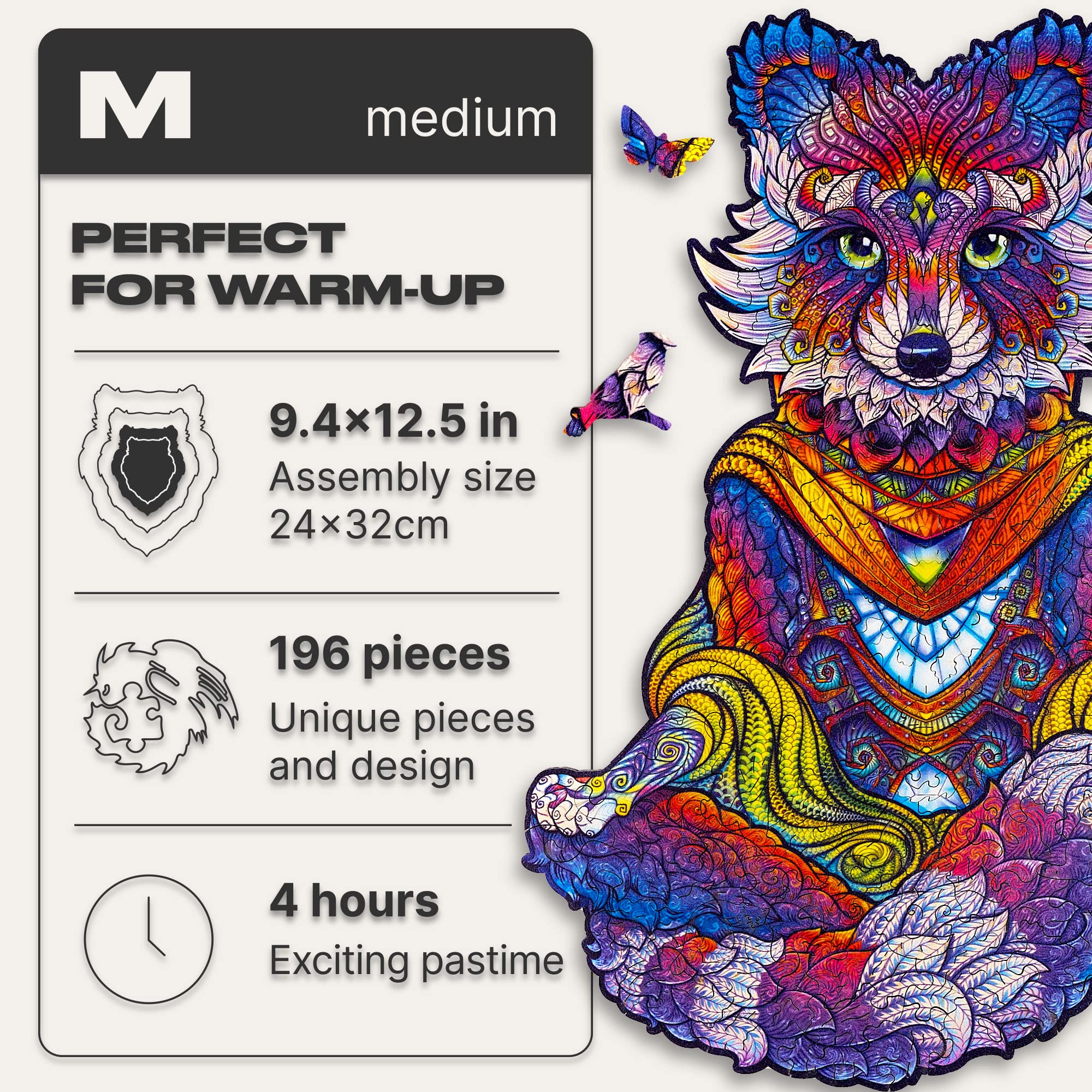 UNIDRAGON Wooden Jigsaw Puzzles - Emanating Raccoon, 196 pcs, Medium 9.4x12.5, Beautiful Gift Package, Unique Shape Best Gift for Adults and Kids