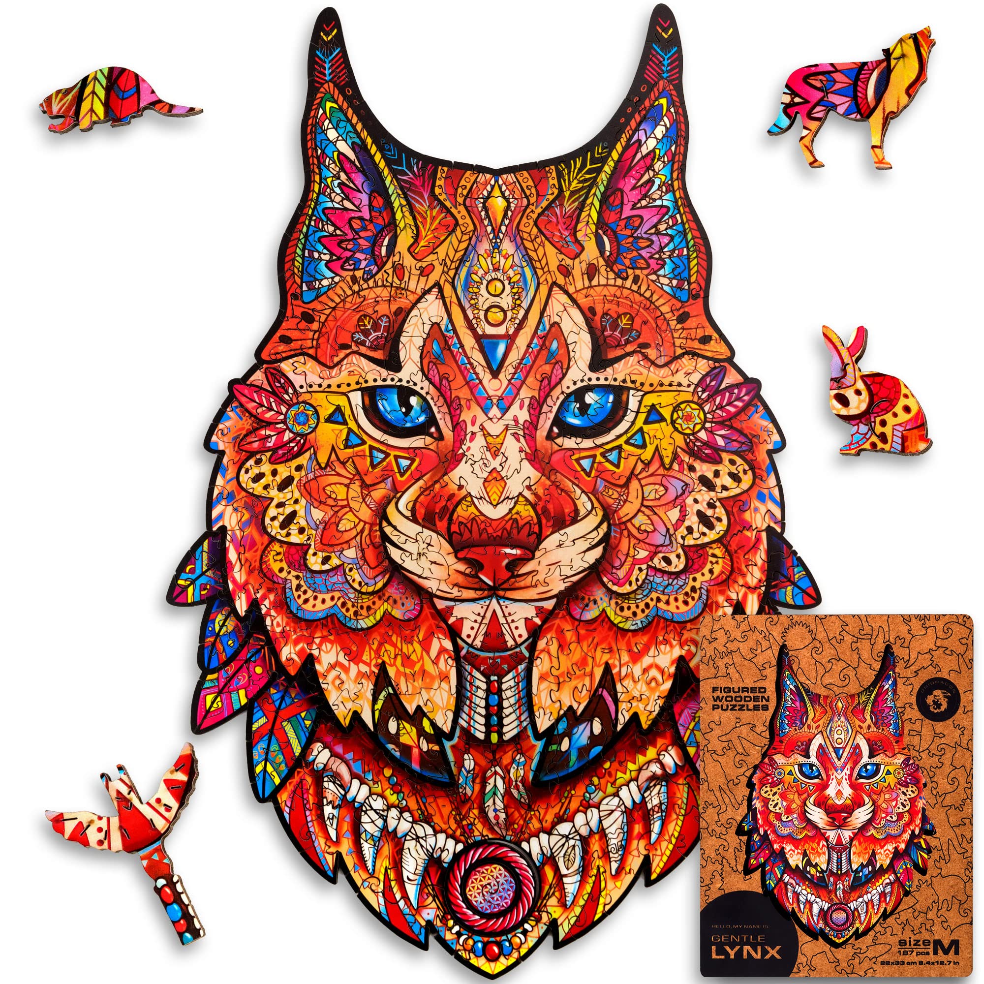 UNIDRAGON Wooden Jigsaw Puzzles - Gentle Lynx, 187 pcs, Medium 8.4" ?12.7, Beautiful Gift Package, Unique Shape Best Gift for Adults and Kids