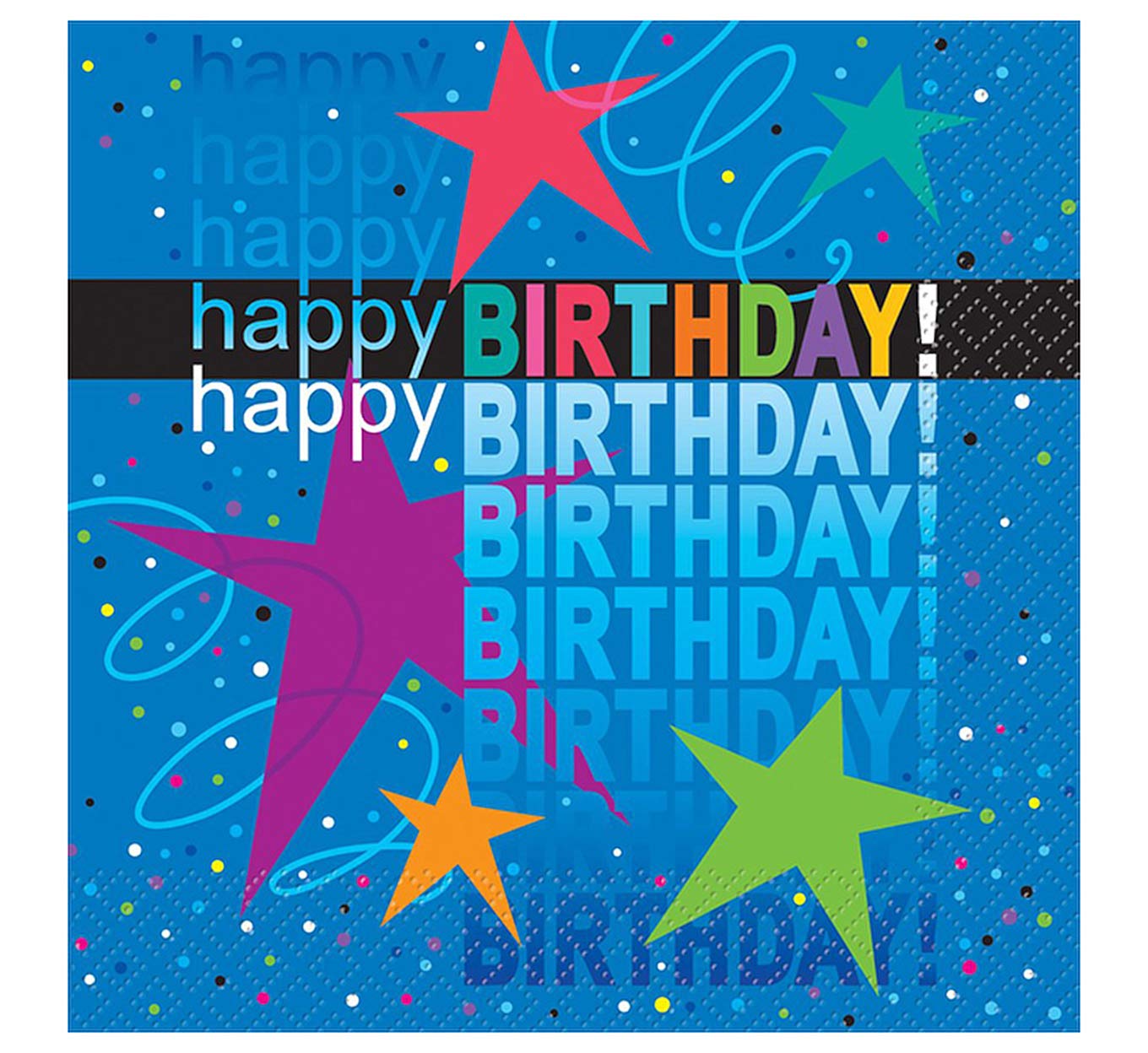 Make the party table stand out with these Cosmic birthday Luncheon napkins. Featuring "happy birthday" Text and a colorful Starry design, These paper napkins are perfect for wiping up spills or crumbs while serving party foods and drinks. Add them to the buffet table at any birthday party for guests to grab as they fill up.