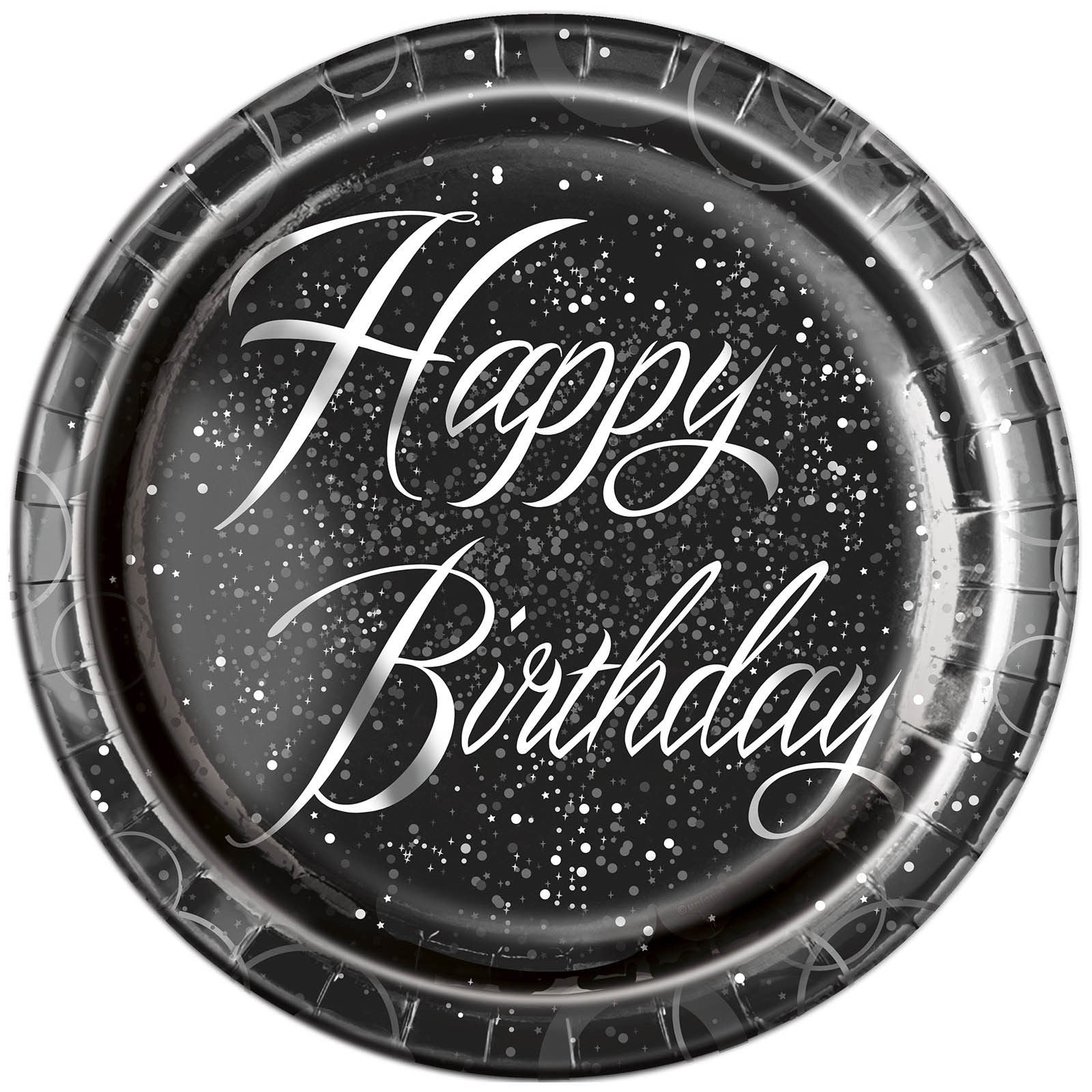 Bring some elegant charm to a special celebration with these Glitz silver foil birthday paper plates. Featuring a silver circles design and shiny "Happy birthday" text, these party plates are ideal for serving hot or cold food at any adult or kid's birthday party. These disposable plates also make cleaning up afterwards easy, allowing you to spend more time with family and friends.