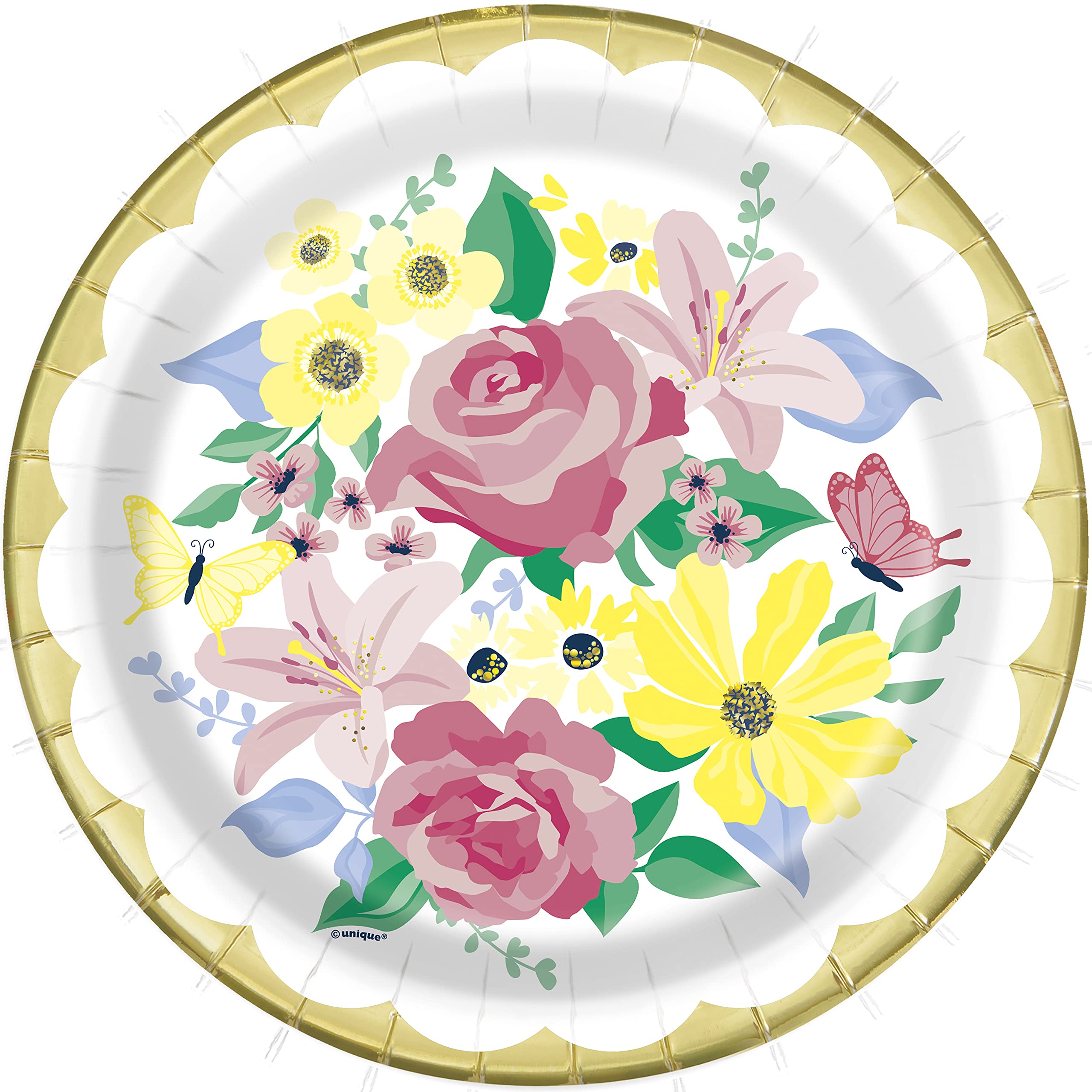 Bring gorgeous blooms to your party table with our Pastel Floral Spring Party Plates. These large paper plates are printed with pink and yellow flowers, and feature a fabulous gold foil border. Use these plates to complete the place settings at your Easter brunch or another springtime event! They’re perfect for holding all your favourite celebratory foods, and as they are disposable, you can simply throw them away once your party comes to an end.