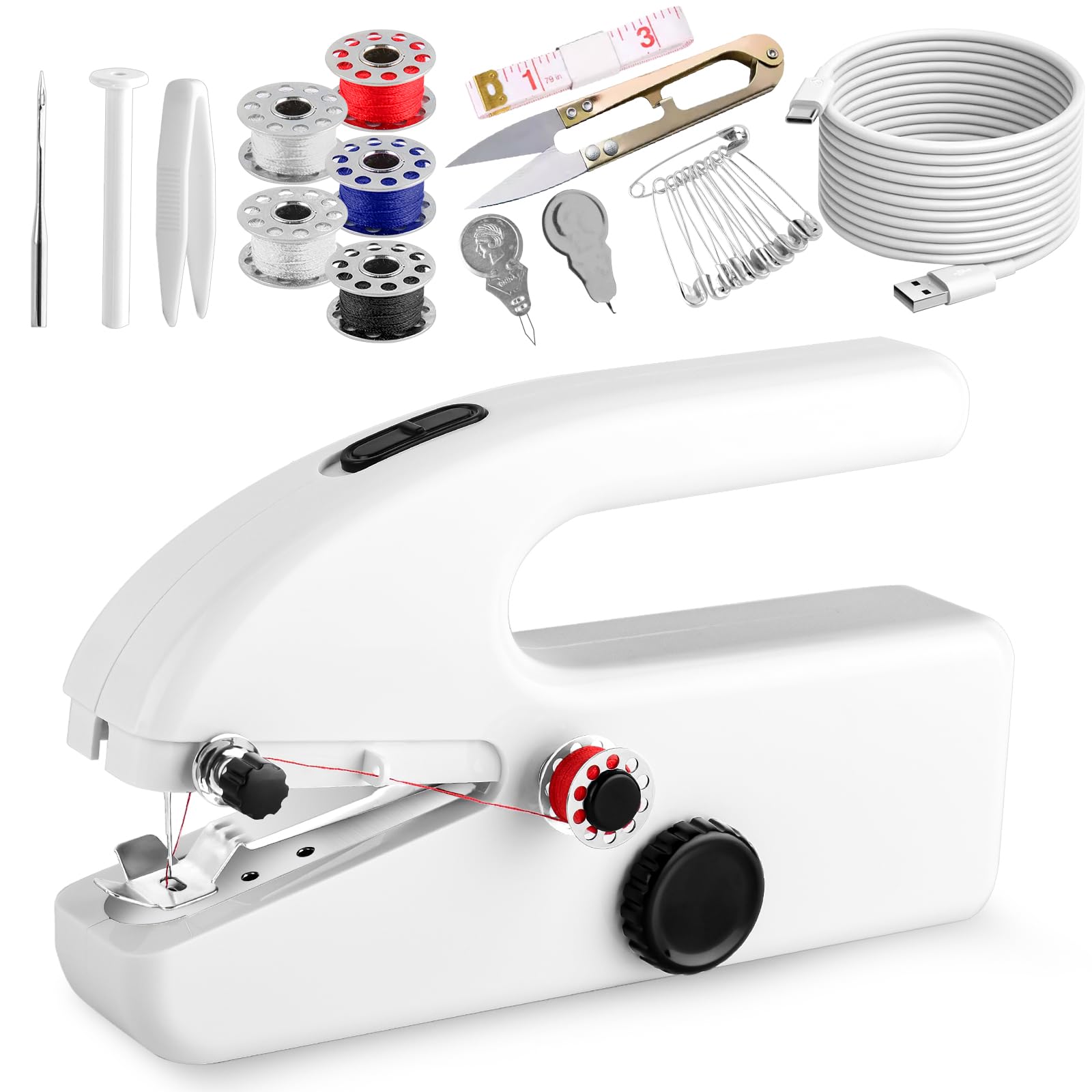 Upgraded Handheld Sewing Machine with 6.6 FT USB C Cable, Portable Mini Sewing Machine for Beginners, Quick Sewing Hand Sewing Machine for DIY, Fabrics, Clothes, Home and Travel (2 Power Modes)