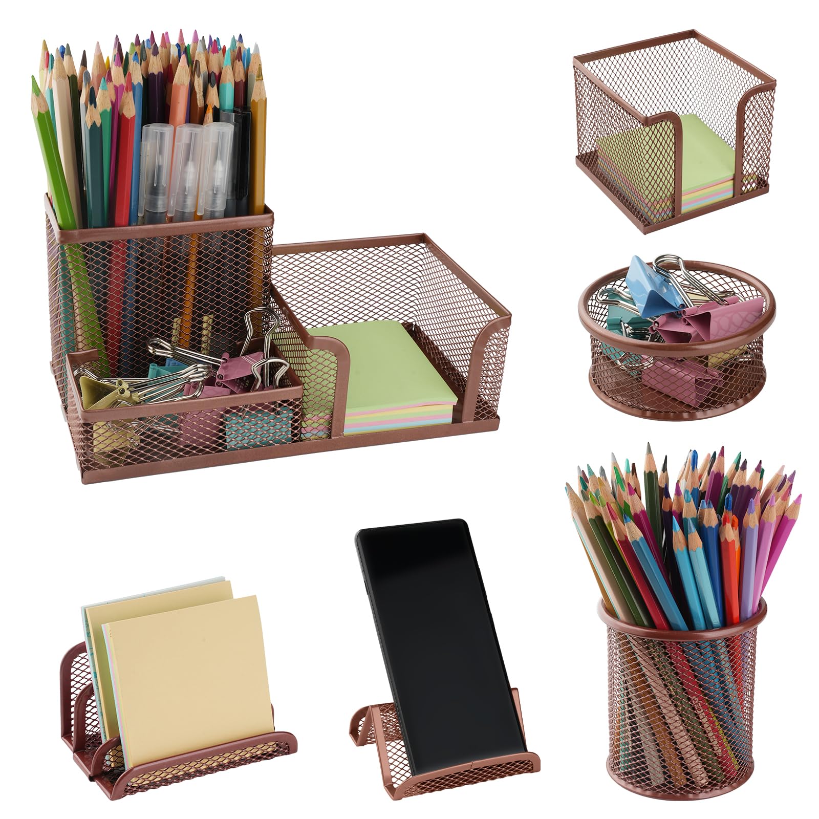 Uppmeant Desk Organizer for Office, 6 Pieces Mesh Desk Multi-functional Storage Set Office Supplies Accessories (Rose Gold)