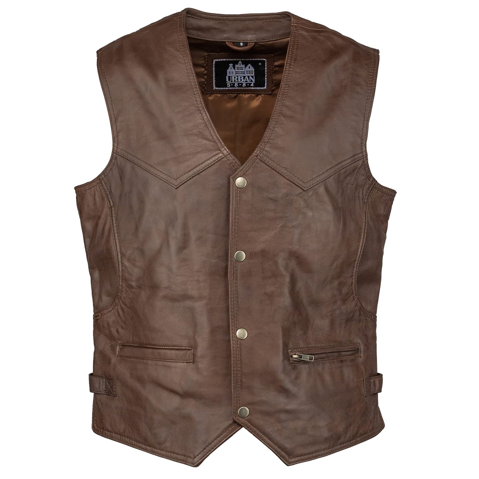 DescriptionBILLIE, the vest with the iconic Biker StyleOur vest is the garment that cannot be missing in the wardrobe of every lover of two wheels. Made with the highest quality sheep leather, carefully selected by our experienced craftsmen, it is extraordinarily soft to the touch, conveying an unparalleled feeling of comfort.The iconic biker style of our vest lends itself perfectly to any occasion, from everyday use to experience on your bike. Equipped with two front pockets (one with zip closure) and two side laces at the waist, it allows you to customize the fit for a perfect fit.The practical closure with four sturdy buttons and high-quality stitching, resistant to wear and tear of time, ensure a long life of the garment. Inside the vest, you will find two deep pockets, one with zipper closure, to store your belongings safely.We specialize in the production of leather jackets and are committed to using only premium leather to ensure maximum comfort and durability of the jackets over time.