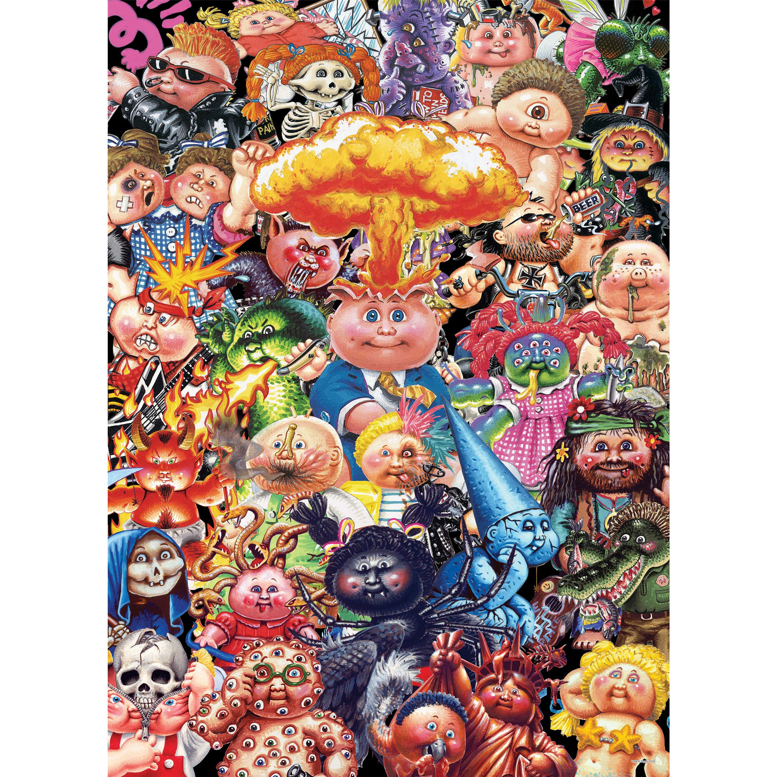 Eyeballs, skulls, and stuck-out tongues will blow your mind in the details of this collectible Garbage Pail Kids jigsaw puzzle celebrating 35 years of the trading card game. Connect 1,000 pieces of a creepy collage featuring Atom Bomb, Fryin' Ryan, Hippie Skippy and other characters that'll have you saying "Yuck!"