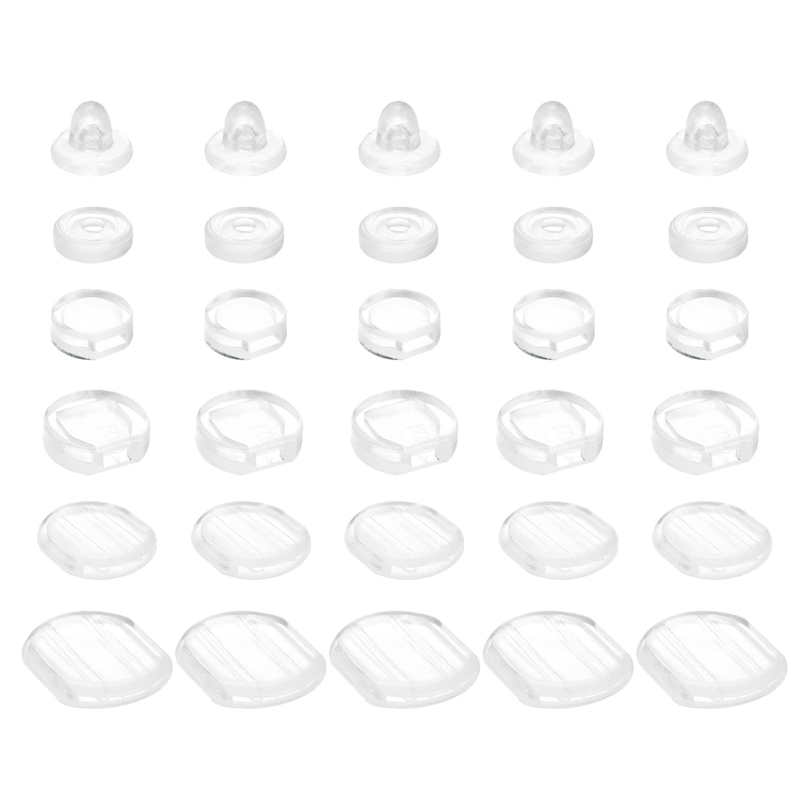 uxcell Earring Pads, 96pcs 6 Styles - Silicone Clip-on Earring Backs, Comfort Earrings Cushions Replacements (Clear)