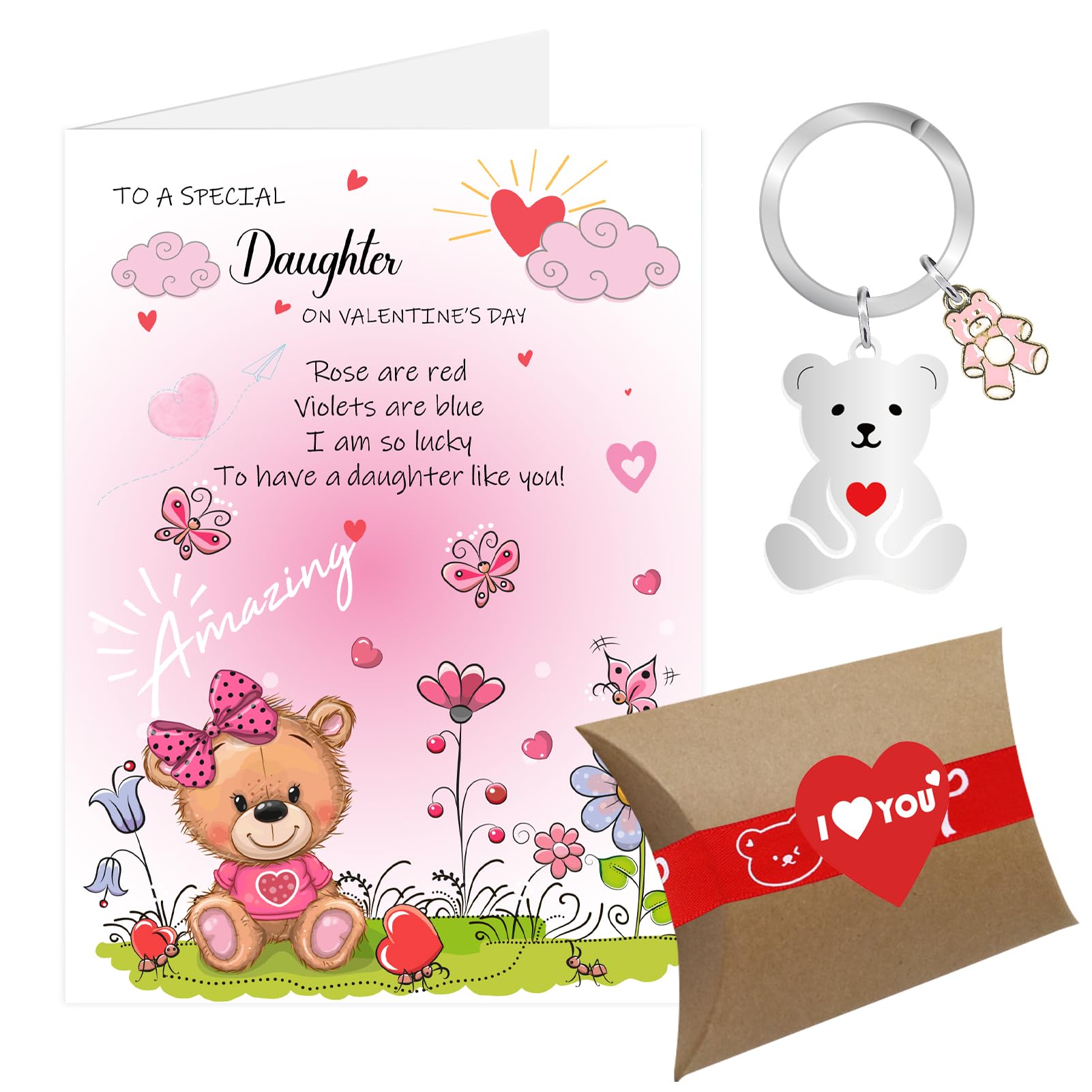 Valentines Card for Daughter, Valentines Day Daughter Gifts, Wife Valentines Card from Dad Mum with Envelope, Valentine's Day Keyring Gifts for Daughter with Gift Box (Daughter)