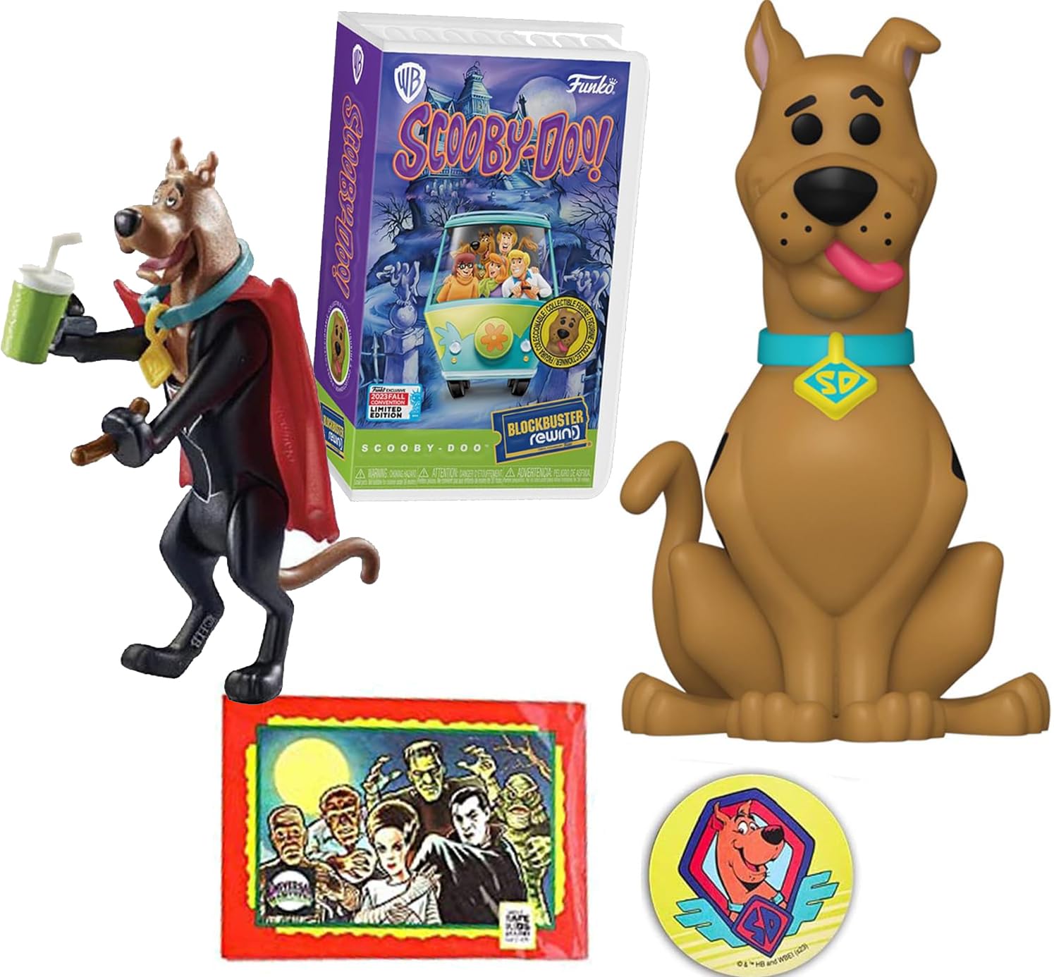 Vampire & Retro Scooby Pop Rewind Figure Exclusive Bundled with Scooby-Doo! VHS Package + Scoob Cartoon Face Mag! + Action Fig + Monster Cards! 3-Items