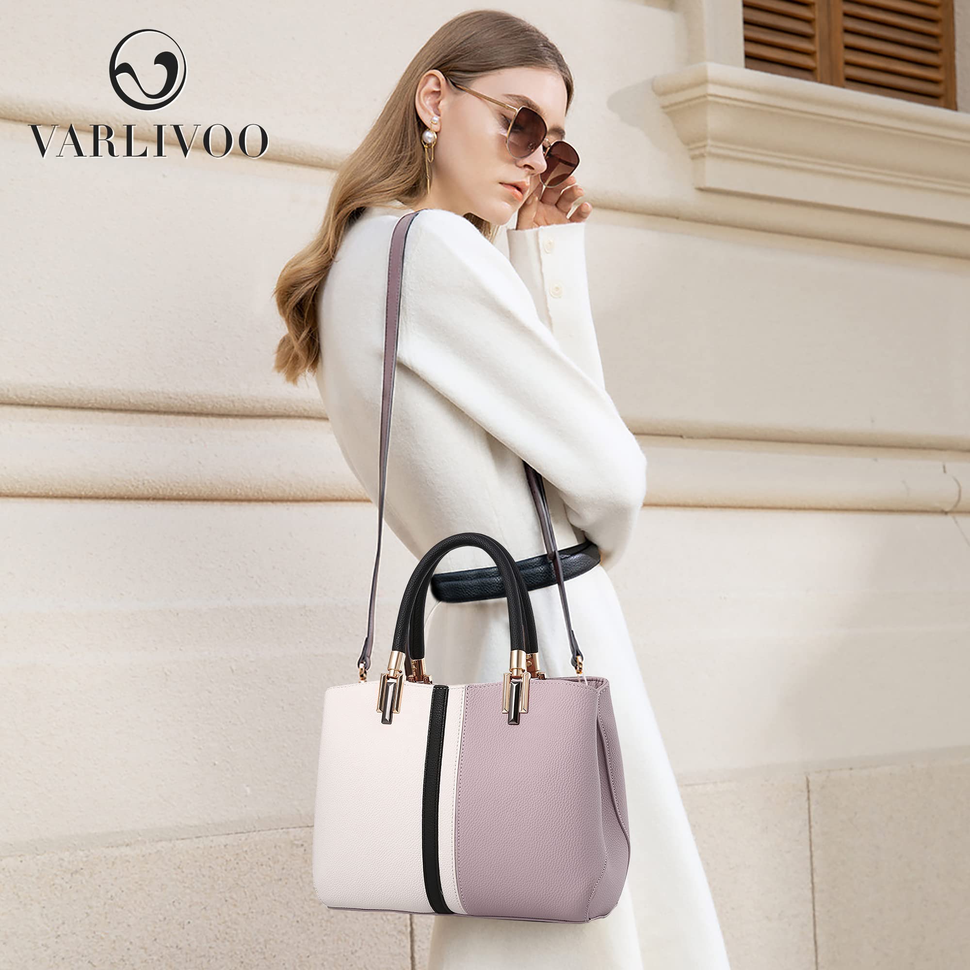 VARLIVOO Elegant Women Handbag Top-Handle Bags Ladies Shoulder Bag Crossbody Bag Work Travel Shopping PU Leather Purple