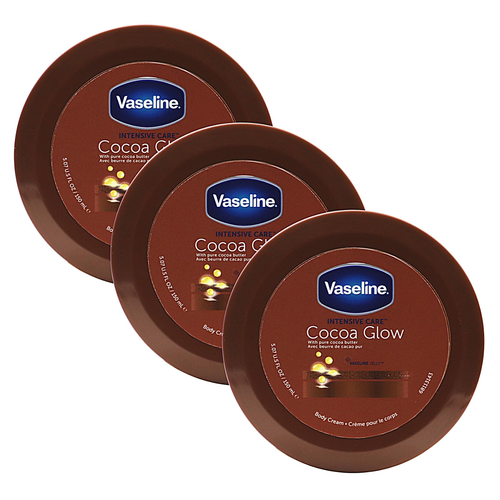 Vaseline Cocoa Glow Moisturizer Body Cream, 3-Pack, 5.07 FL Oz Each, 3 Jars