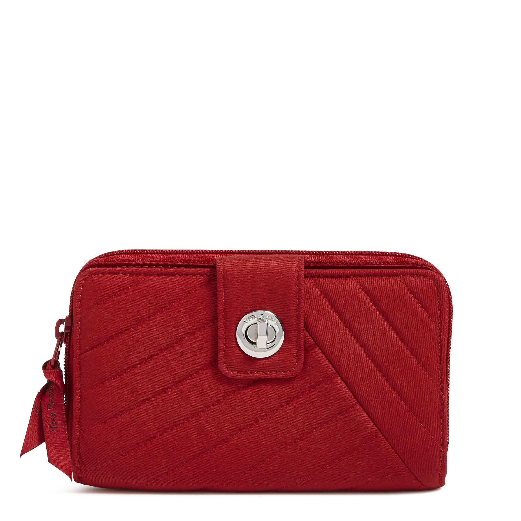 Vera Bradley offers many wallet styles that will match back to your handbag, purse, backpack, bag, or travel gear. We offer wallets for women, iphone wallets, phone wallet, slim wallet, RFID wallets for women, wallet for women, travel wallet, small wallets for women, card case, wristlets, checkbook wallets, and more! Consciously crafted with recycled cotton. Provides RFID protection for credit and debit cards. Exterior features one zip coin pocket. Interior features ten card slips, two bill slips and two ID windows. Turnlock and zip closures. Spot clean with mild detergent and a soft, damp cloth, rinse thoroughly; lay flat to dry