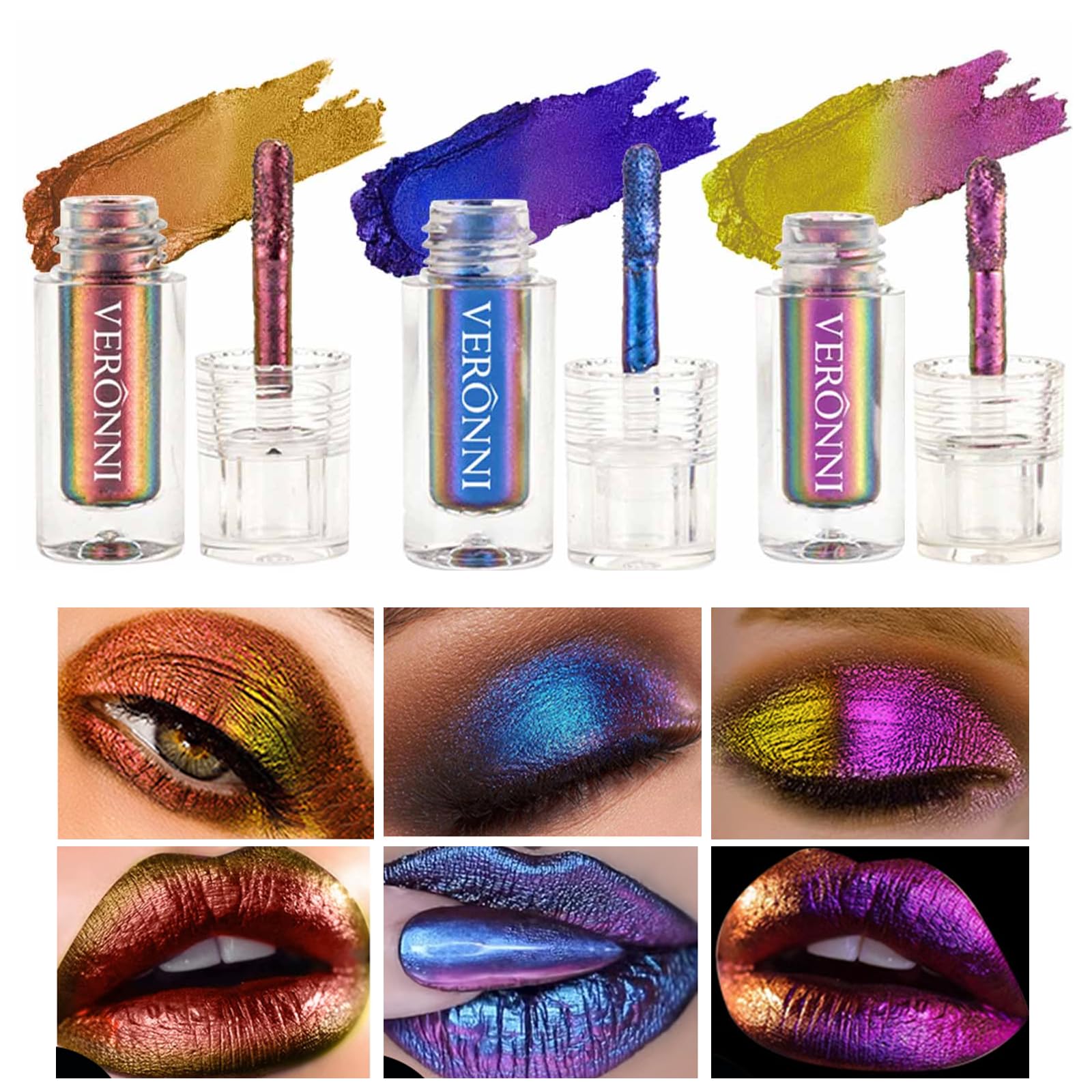 This is a chameleon eyeshadow inspired by the Northern Lights, 3pcs in a small gift box, small size and large capacity, easy to carry. This chameleon liquid eyeshadow color shifting in different lighting and angles, easy to use, three-dimensional eye makeup look , long lasting ,intense shimmering discoloration, formulated to be wrinkle-free, transfer-resistant, and anti-flaking, the metallic eye looks that last all day.