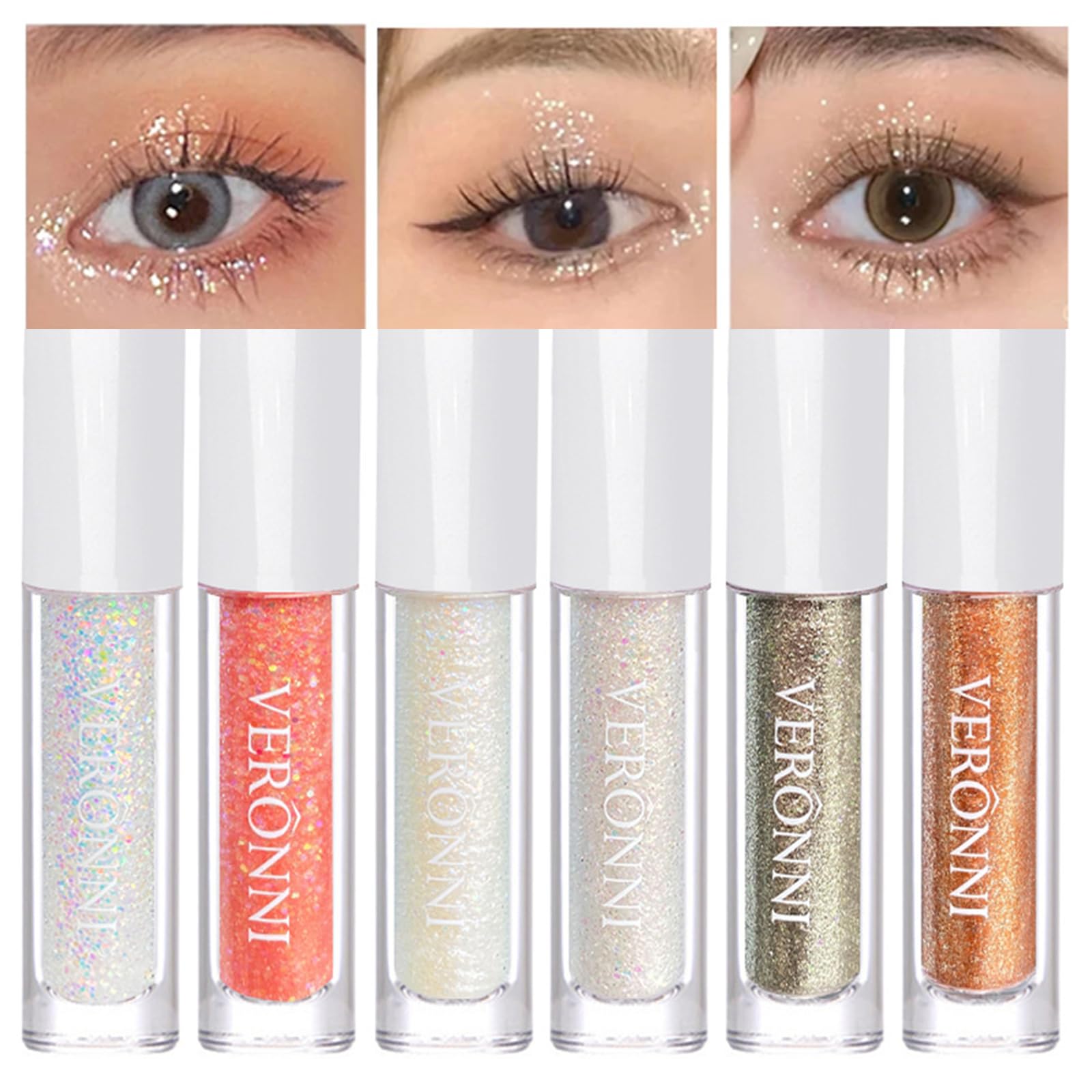 VERONNI Liquid Glitter Eyeshadow Eyeliner -Korean Makeup,6 Colors Metallic Glitter Shimmer Eye Shadow Makeup Kit,Pigmented,Quick Drying Waterproof Long Lasting Sparkling Eye Glitter Make Up
