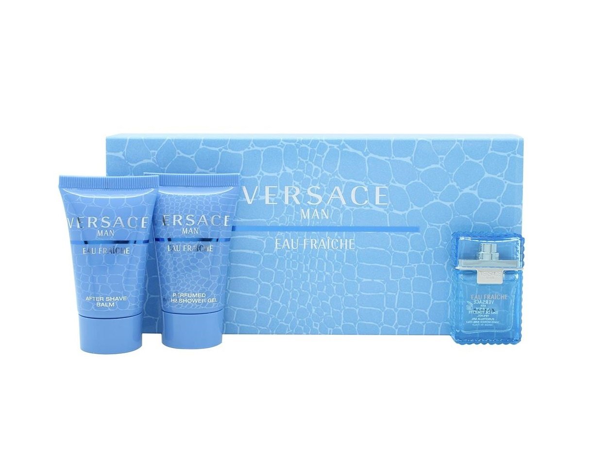 DescriptionVERSACE MAN EAU FRAICHE by Gianni Versace for Men EDT .17 OZ MINI & AFTER SHAVE BALM .8 OZ MINI & SHOWER GEL .8 OZ MINI Lemon, Rosewood, Carambola, Cedar leaves, Tarragon, Sage, Musk, Amber, Sycamore wood