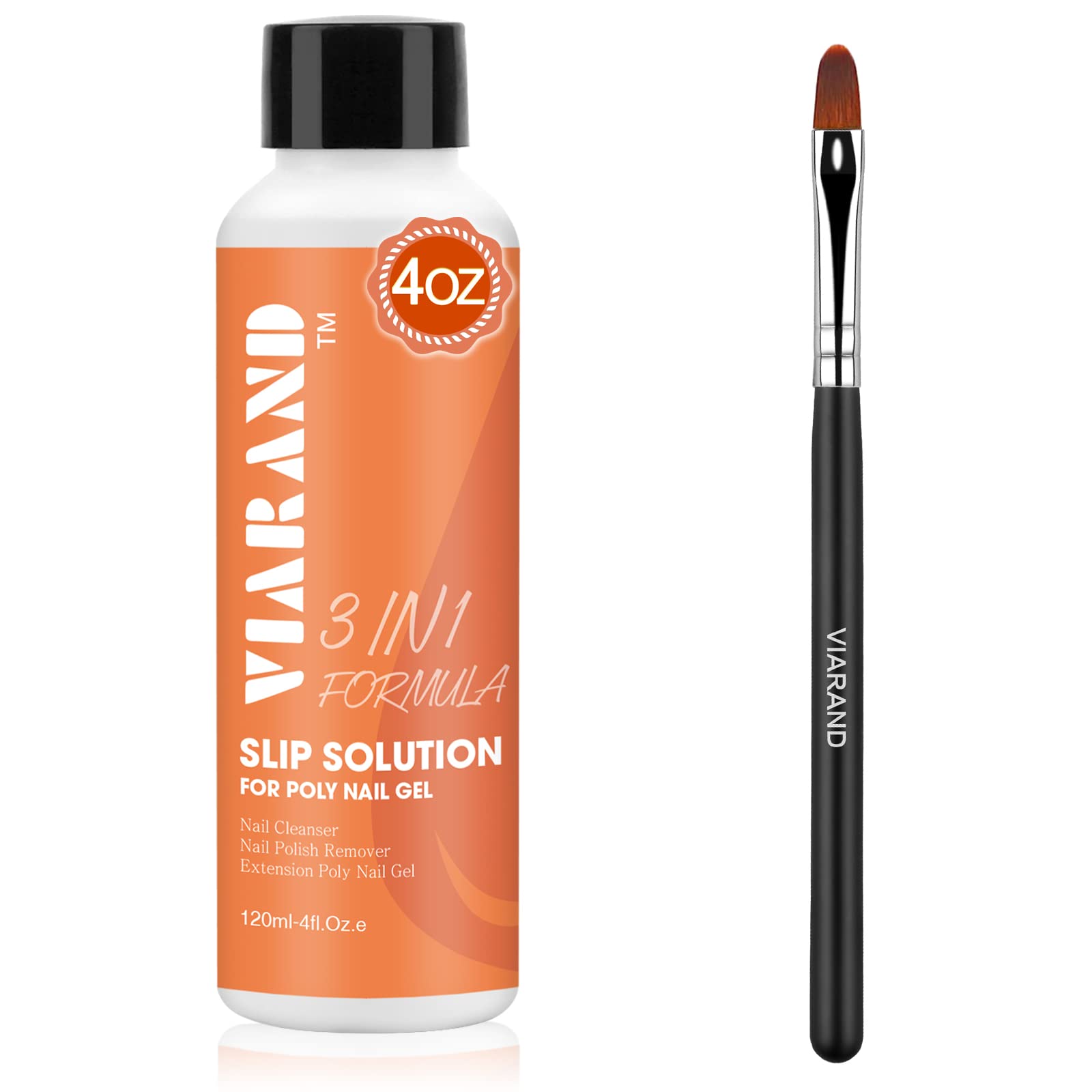 Viarand Poly Gel Slip Solution 4oz Extension Gel for Poly Gel Nails Anti-Stick Poly Gel Slip Solution with brush, nail and brush cleaner Design Poly Gel Nails at home