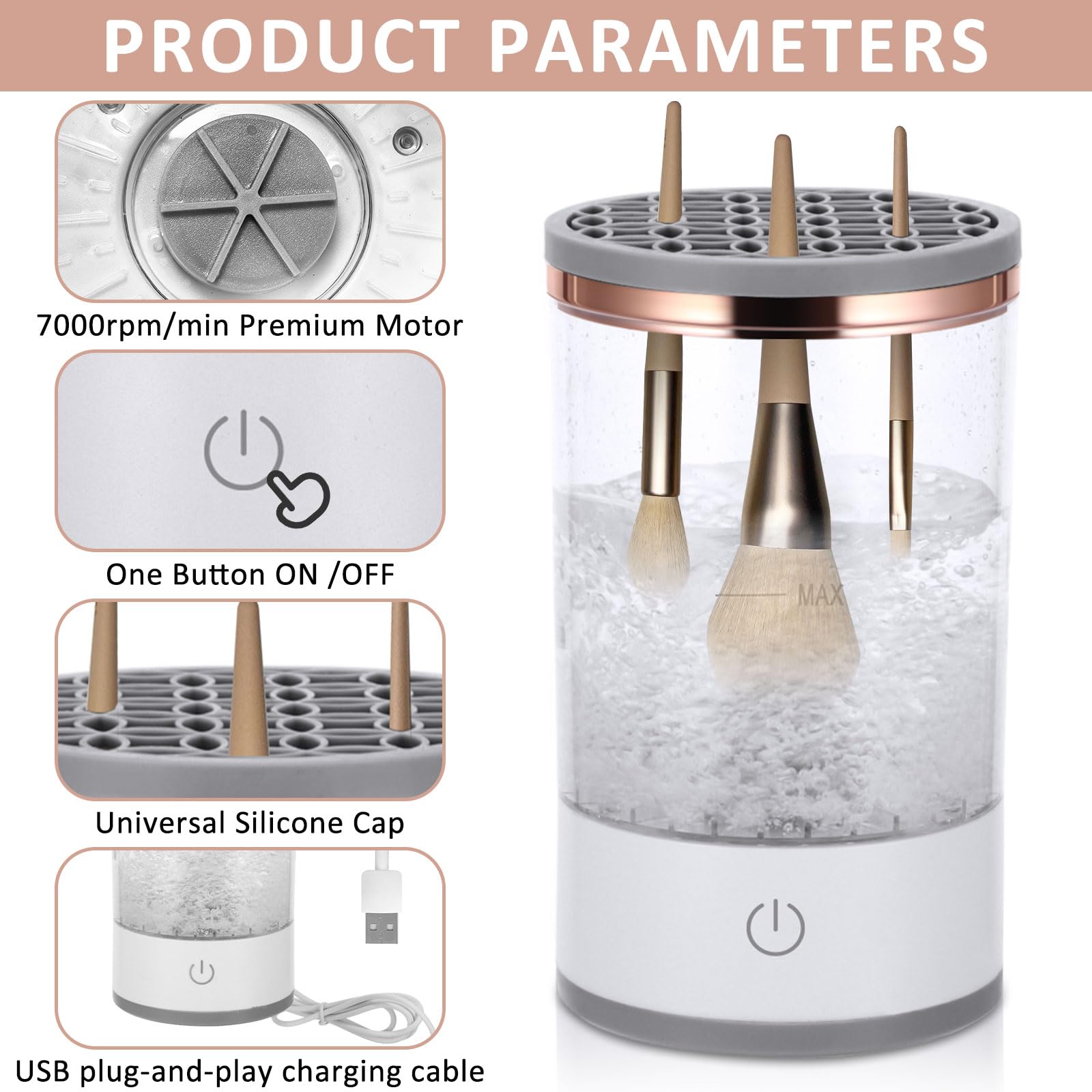 ???? Through automated 360° rotating cleaning, our cleaning machine is able to deeply clean makeup brushes, achieving 98% cleanliness! The porous design also cleans multiple brushes at the same time, making the cleaning process faster and more efficient!
