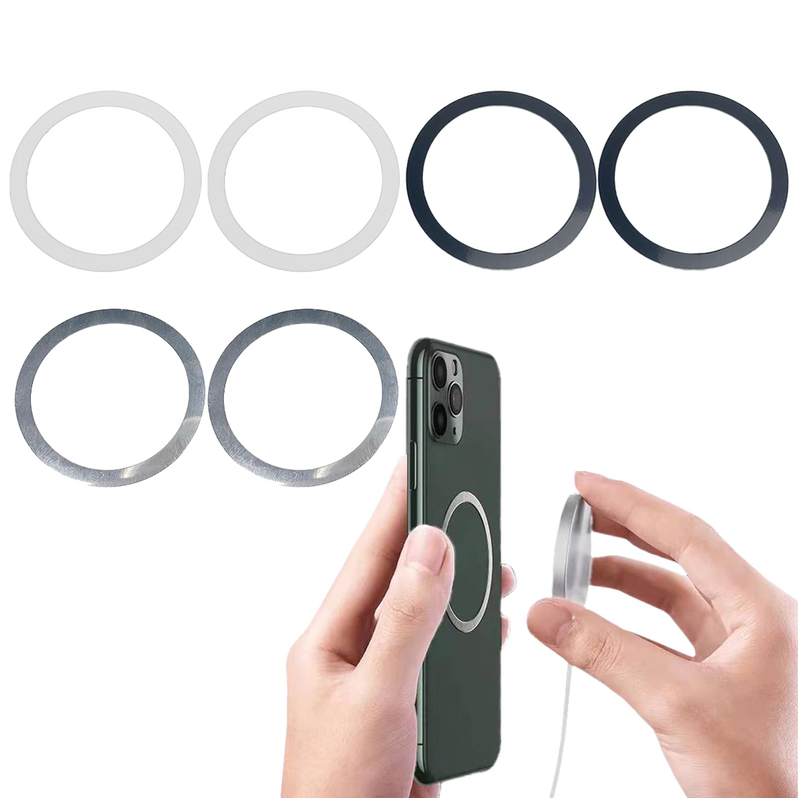 Vilbocr Universal Metal Rings Stickers for Magnetic Charger Compatible with Magsafe Magnetic Wireless Charger, Ultra Thin Car Charger Conversion Accessories, Silver, Black, White, Pack of 6