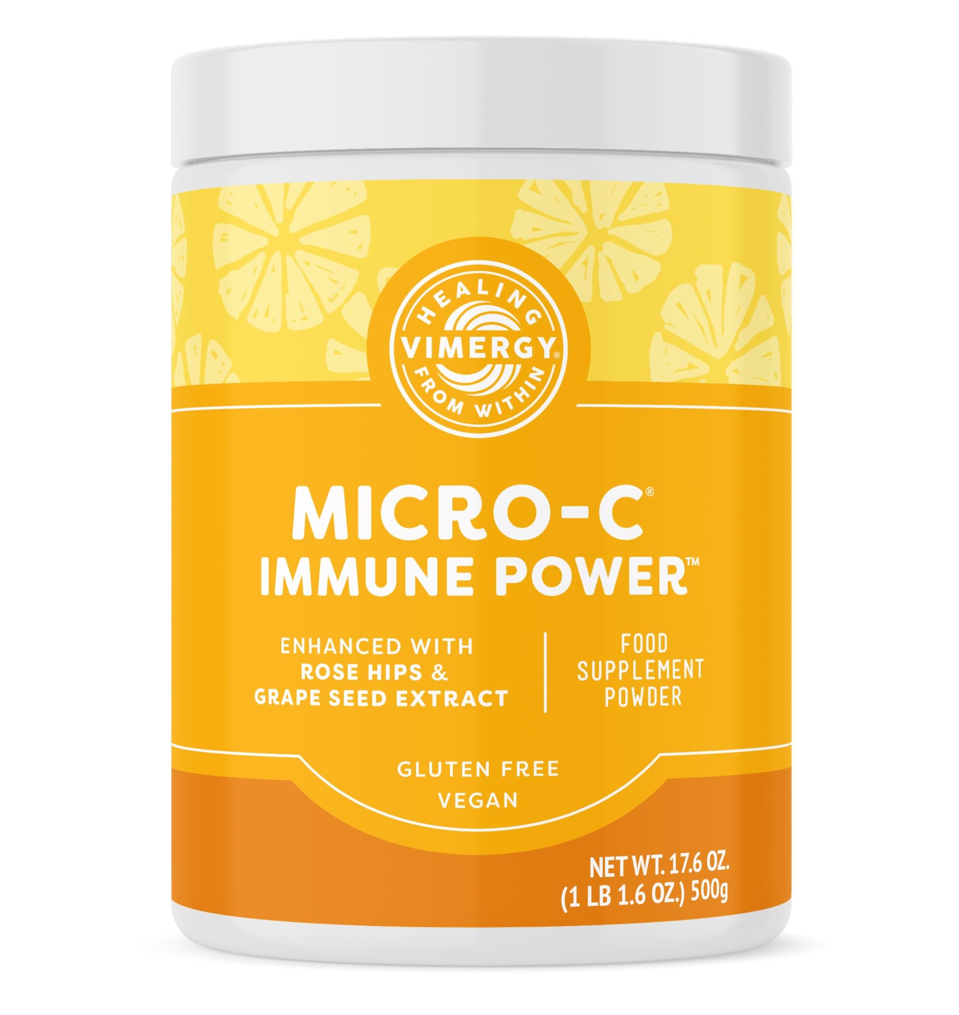 Vimergy Micro-C Immune Power is a potent, benefit-packed formula. It is stacked with powerful active ingredients to provide the support you need when you need it. No fillers, no anti-caking agents, and no refined sugar. Vimergy Micro-C Immune Power provides a potent 1000mg of vitamin C per ½ scoop serving! This small volume of powder can easily be mixed into existing parts of your daily routine such as in smoothies in the morning, on top of fruit salad at lunch, or mixed in a glass of water for a late afternoon pick-me-up! But What is Vitamin C anyway? Vitamin C is a foundational nutrient. It’s important for growth, maintenance, and repair of many tissue types. Vitamin C is essential. This means that we can’t make our own. Humans are on the short-list of mammals that can’t make vitamin C. Vitamin C is water-soluble. This means we don’t store it well in the body either. If we can’t make it and we can’t store it, we need to take it in regularly through diet or supplements like Vimergy Micro-C Immune Power to prevent deficiency. Each serving of Vimergy Micro-C Immune Power is loaded with 1000 mg of gentle vitamin C, plus 5 complementary phytonutrients including bamboo silica to support collagen production. Collagen is important for supporting healthy teeth, skin, bones, and cartilage. Micro-C Immune Power offers key benefits to the immune system and musculoskeletal system. Plus, it provides powerful antioxidant support. Stay healthy from head-to-toe year-round with Vimergy Micro-C Immune Power! The entire line of Vimergy powder supplements is formulated to be fast absorbing versus capsule or tablet forms. Vimergy powders are bioavailable, nutrient dense food supplements that allow you to give your body exactly what it needs to thrive. They are formulated without anti-caking agents, fillers, colors, or added sugar. Vimergy powders make supporting your health needs from day to day a breeze. Easily add to water, juice, or a smoothie. Powder power!